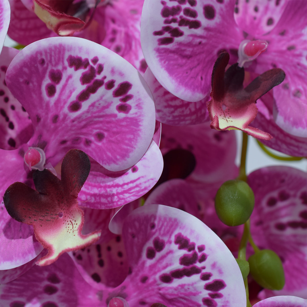 Fie ca vorbim de living, dormitor sau chiar birou, aceasta orhidee artificiala in ghiveci ofera un accent cochet pentru un decor modern si elegant.