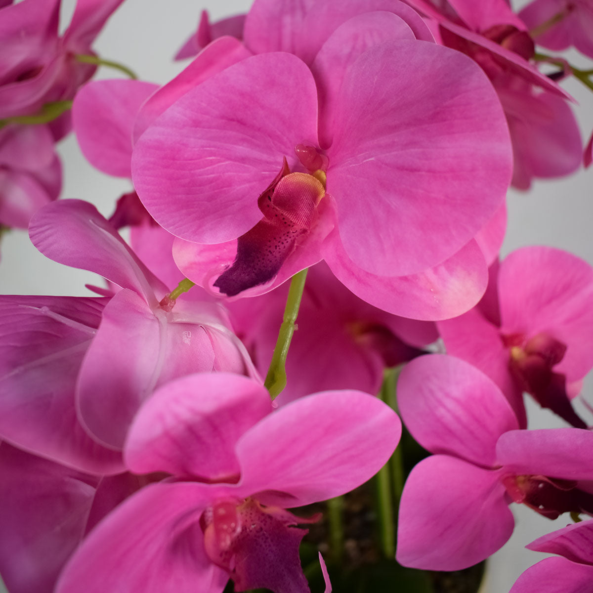 Fie ca vorbim de living, dormitor sau chiar birou, aceasta orhidee artificiala in ghiveci ofera un accent cochet pentru un decor modern si elegant.