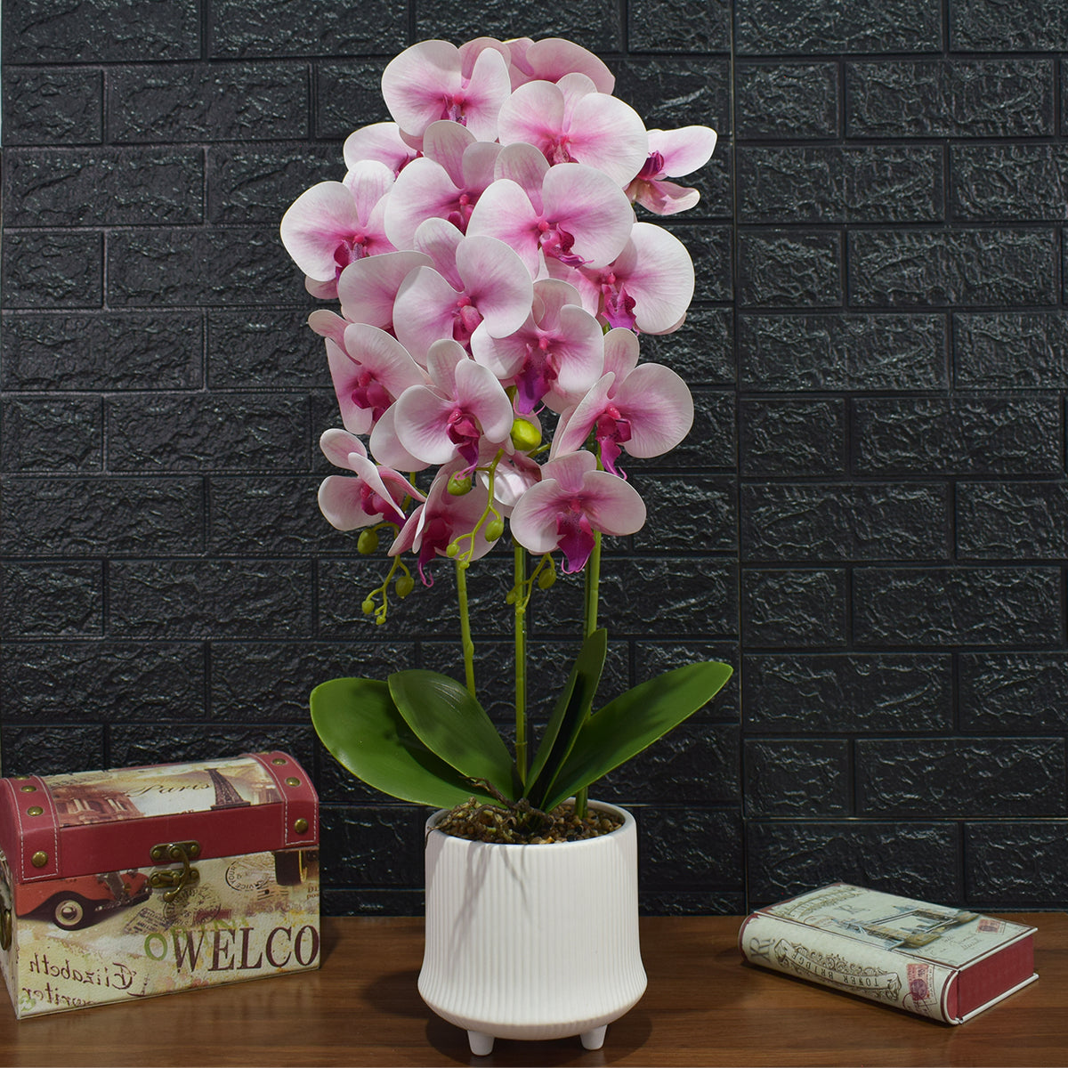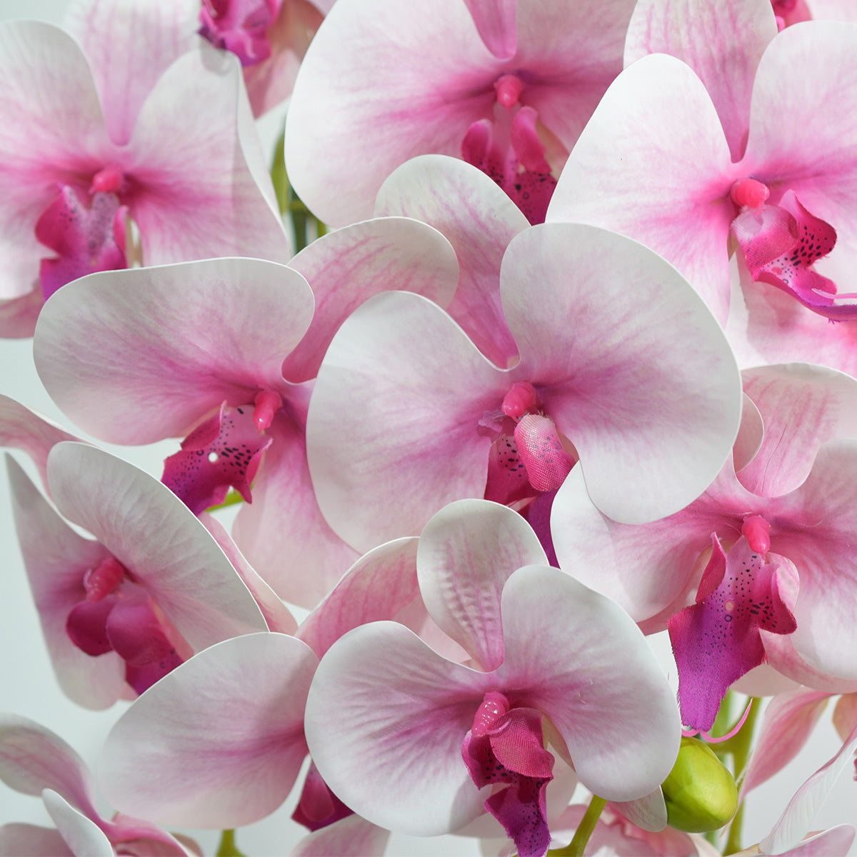 Fie ca vorbim de living, dormitor sau chiar birou, aceasta orhidee artificiala in ghiveci ofera un accent cochet pentru un decor modern si elegant.