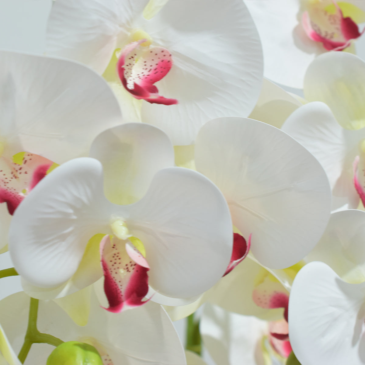 Fie ca vorbim de living, dormitor sau chiar birou, aceasta orhidee artificiala in ghiveci ofera un accent cochet pentru un decor modern si elegant.
