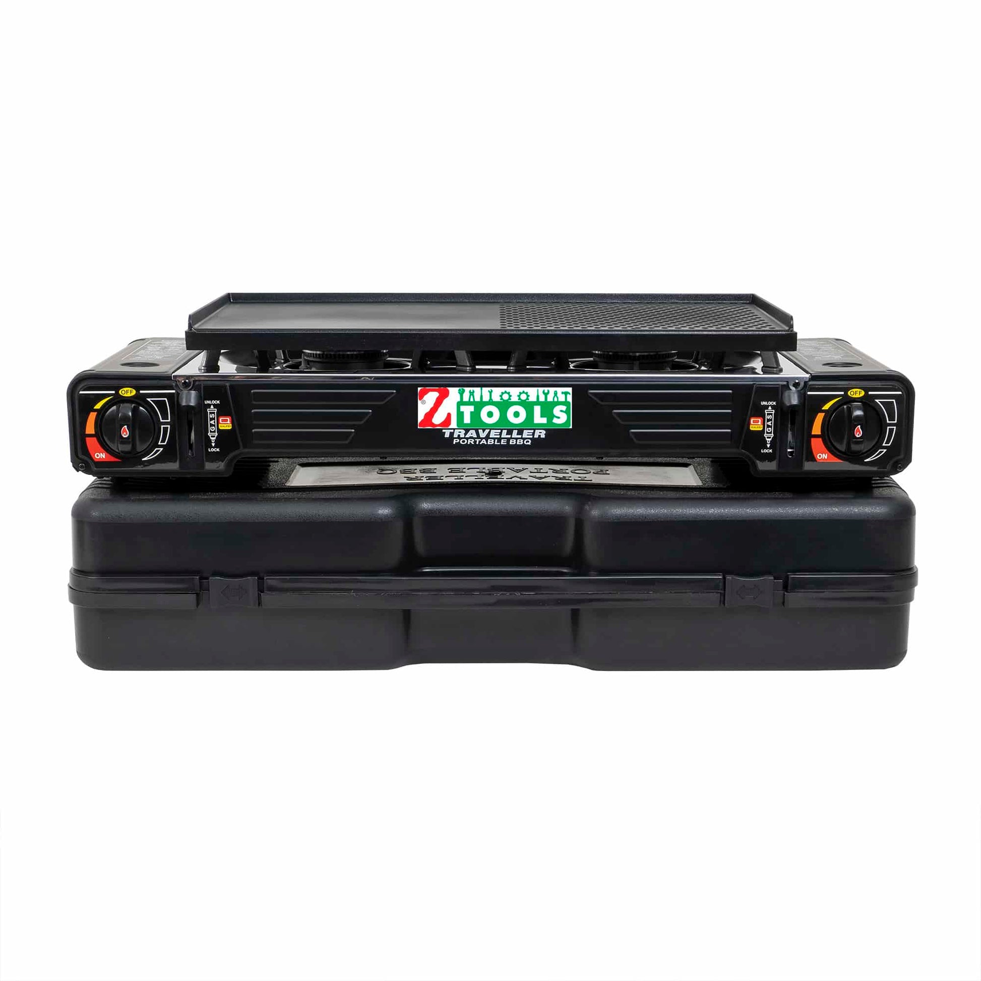Pachet aragaz camping cu 2 ochiuri, aprindere electrica, putere 2x2.5kw, din inox cu tava gril si cutie de transportat + 4 butelii 410ml / ZTS 5619_1