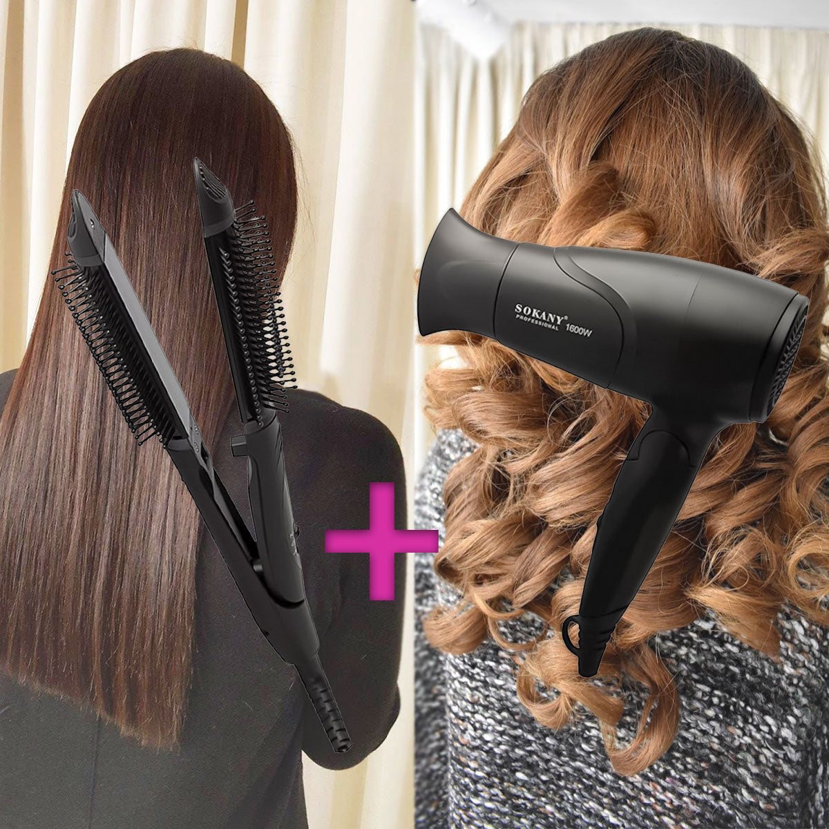 Pachet: Placa pentru indreptat si ondulat parul Sokany 029 + Uscator de par pentru voiaj Sokany SK-318, 1600W