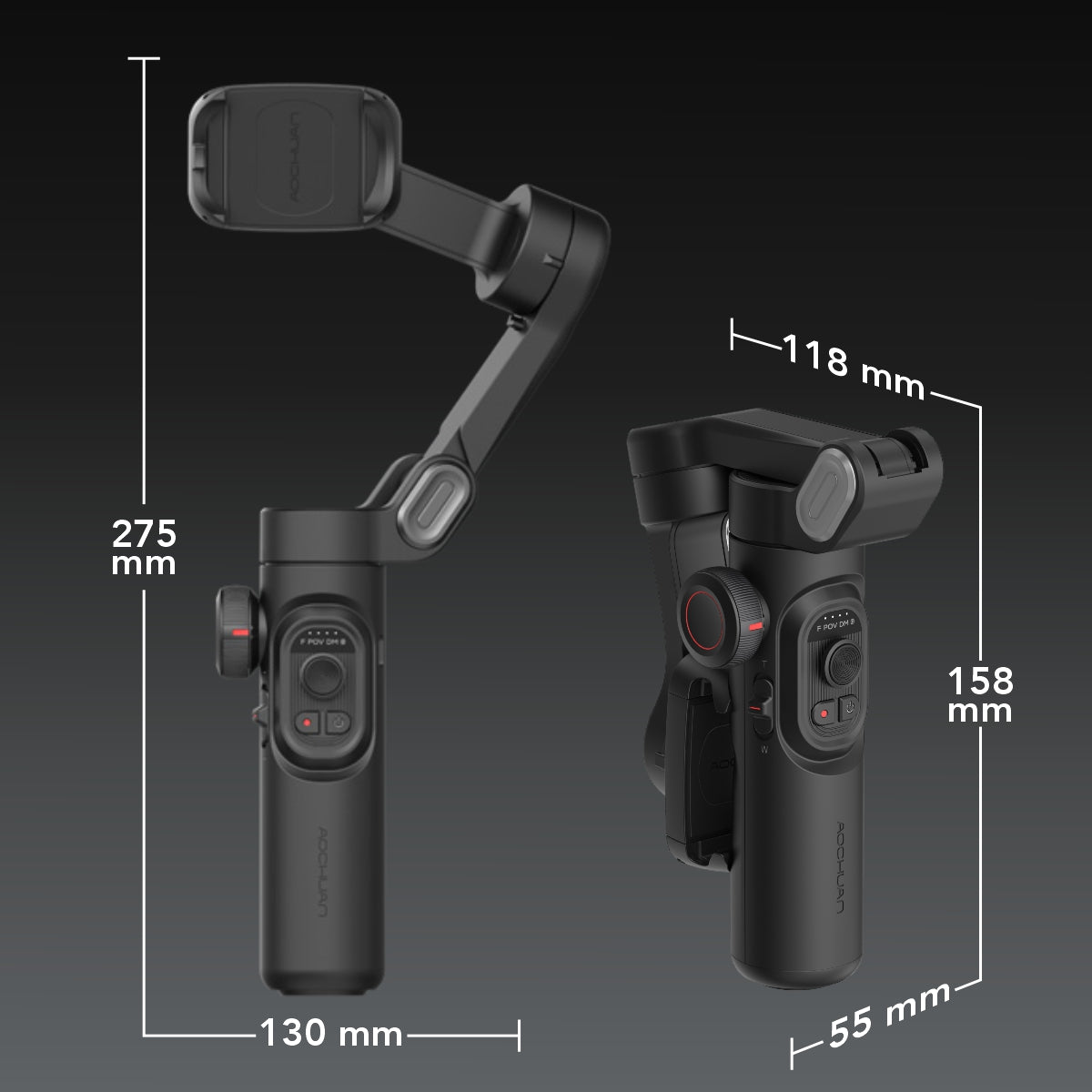 Pachet promo: Gimbal Aochuan SMART XE, D6730 + D6736 Lumina RGB Aochuan cu placute magnetice, aplicatie dedicata, Content Creator Edition, Negru Mat