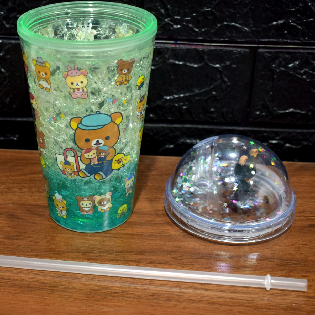 Cu un design captivant, paharul are un capac cu filet si o miniatura cu un ursulet in interiorul acestuia, care va fascina copiii.