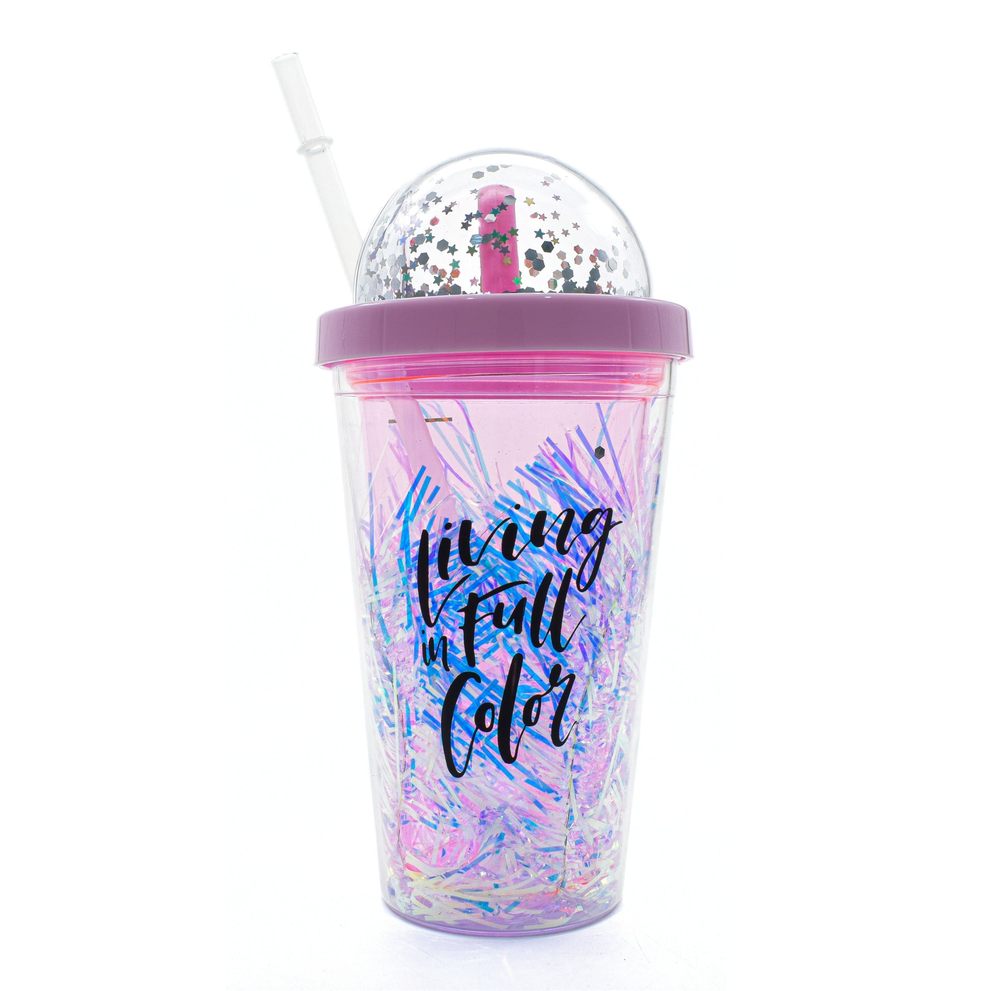 Pahar cu capac, Naimeed D5027, Roz-Paiete