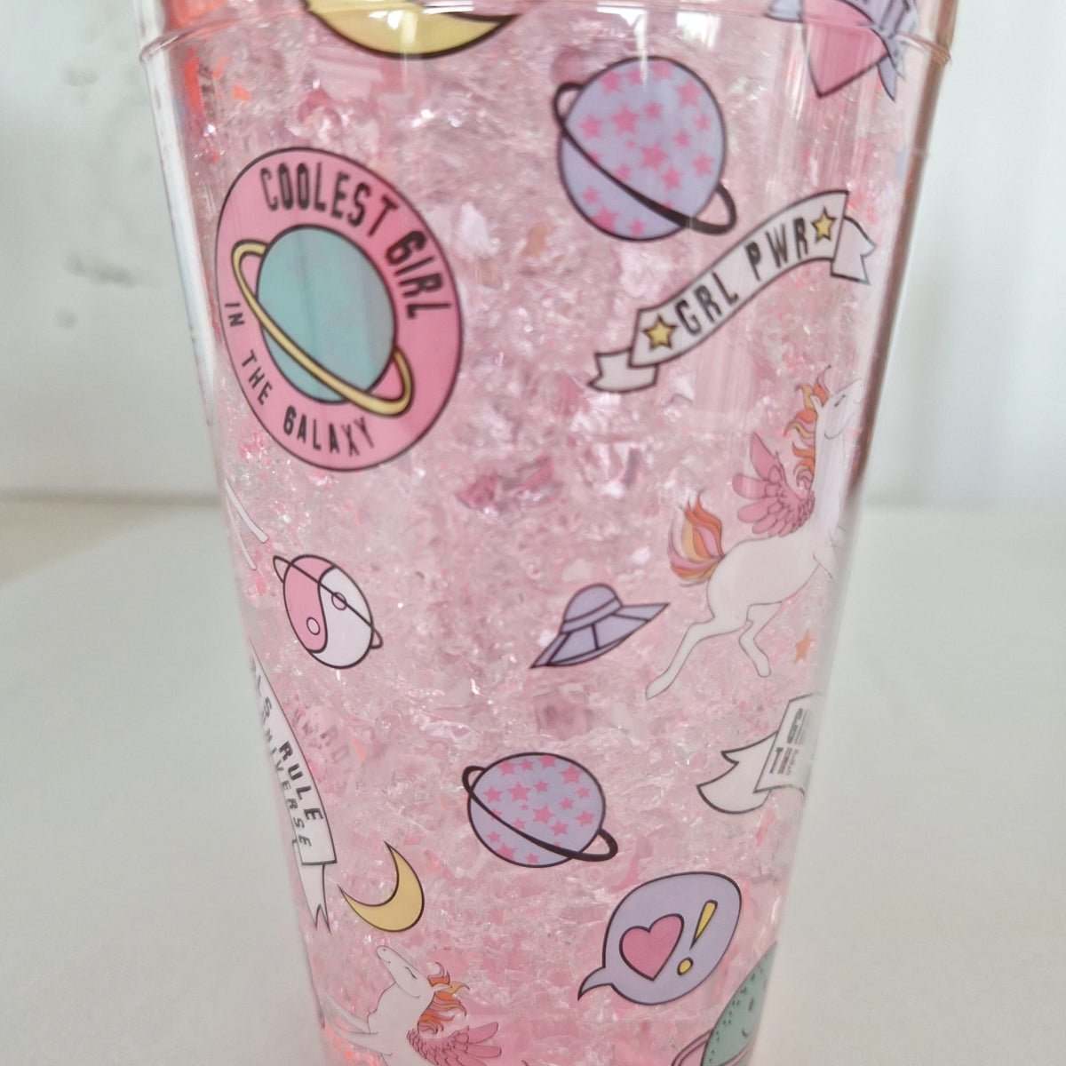 Pahar cu capac si pai, Naimeed D5020, Roz-unicorn