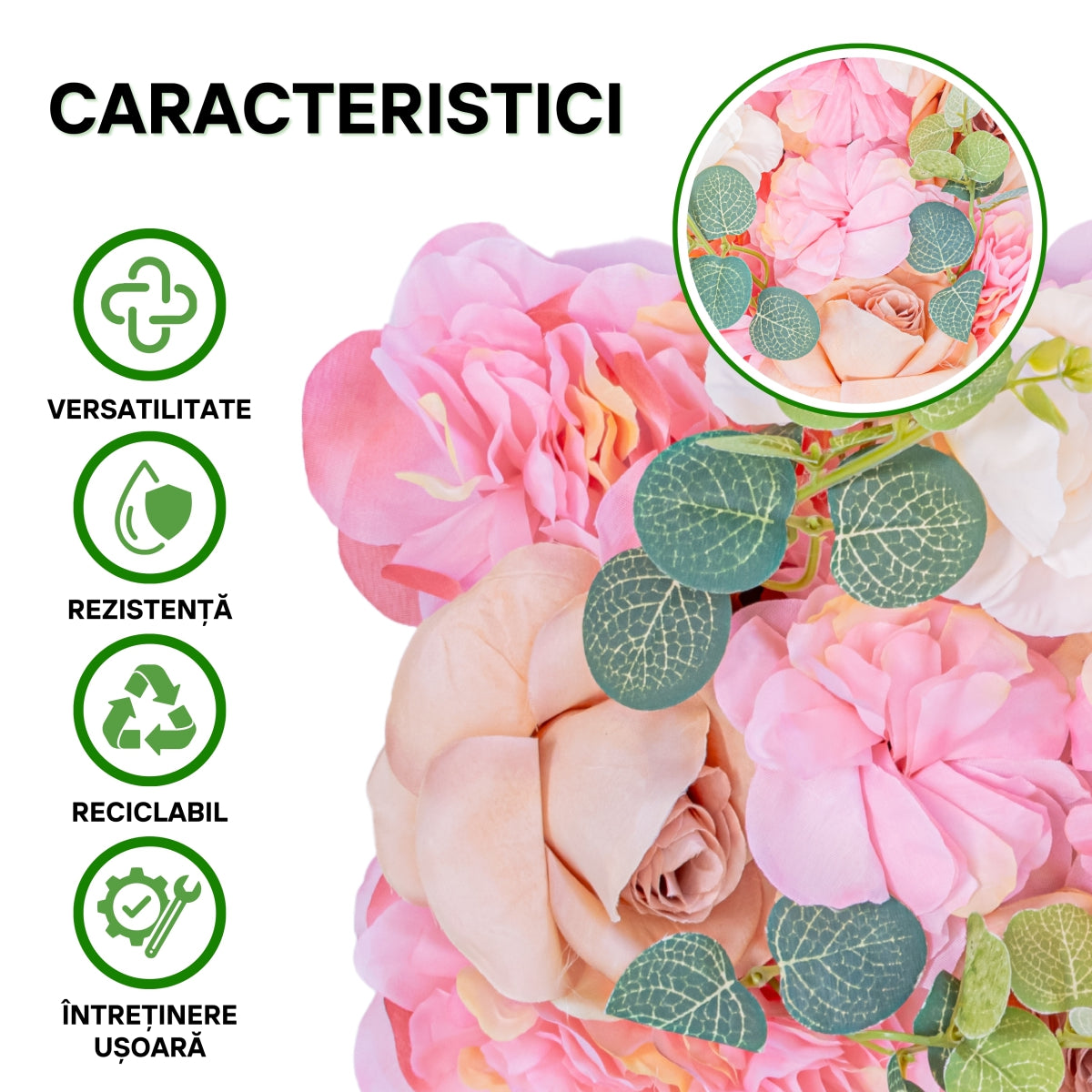 Panou din plante artificiale cu flori, Naimeed D5905, Roz, 250x100mm