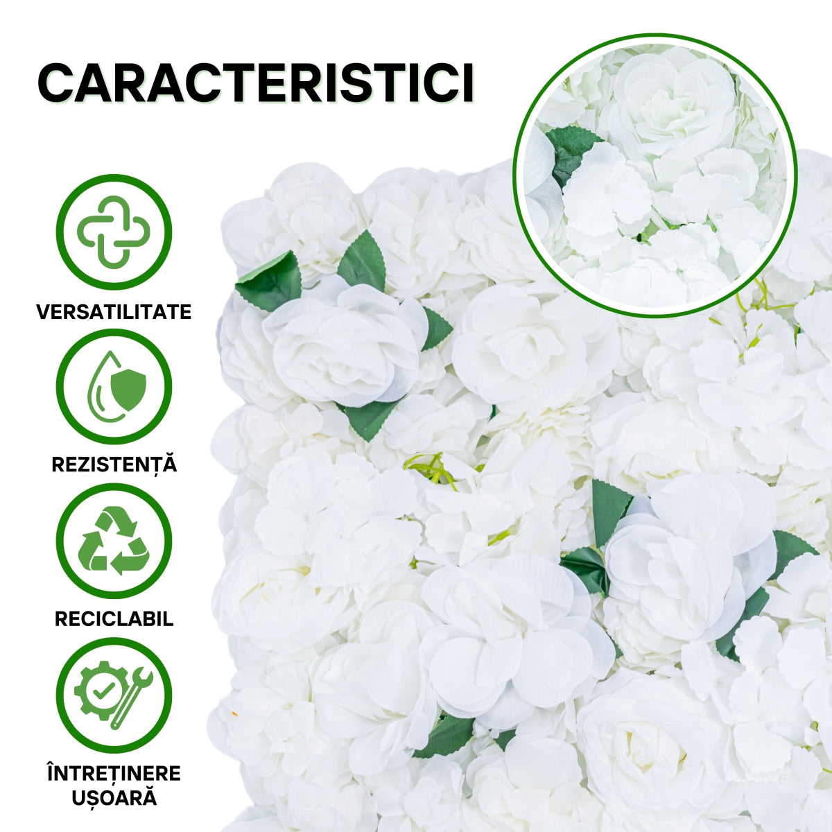 Panou din plante artificiale cu flori, Naimeed D5911, Alb, 600x400mm