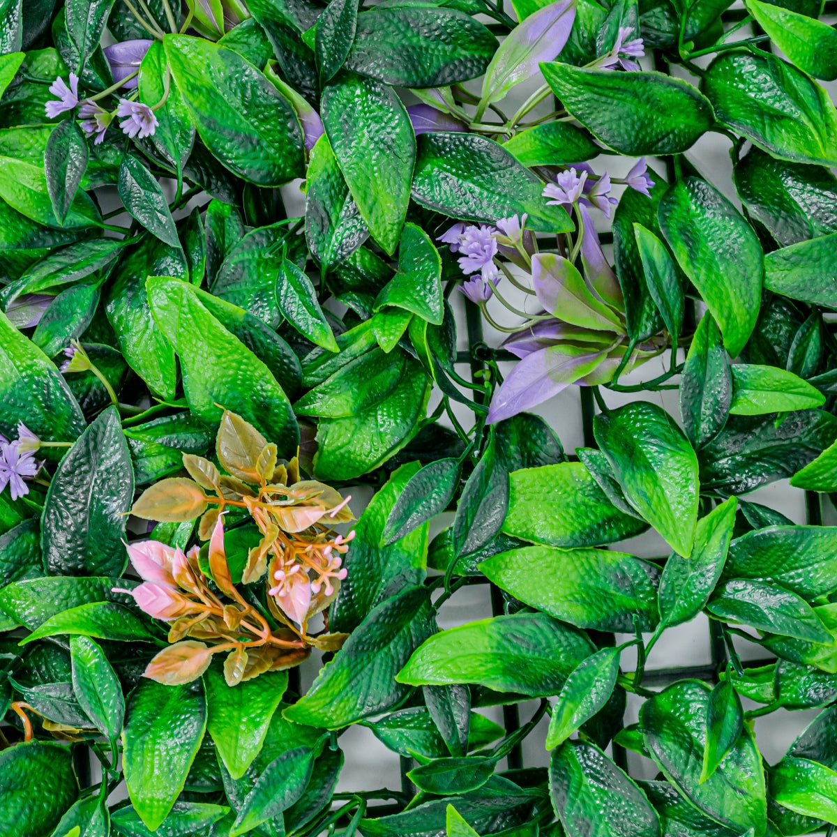 Panou din plante artificiale, cu frunze si flori, Naimeed D5898, Verde-Mov, 600x400mm