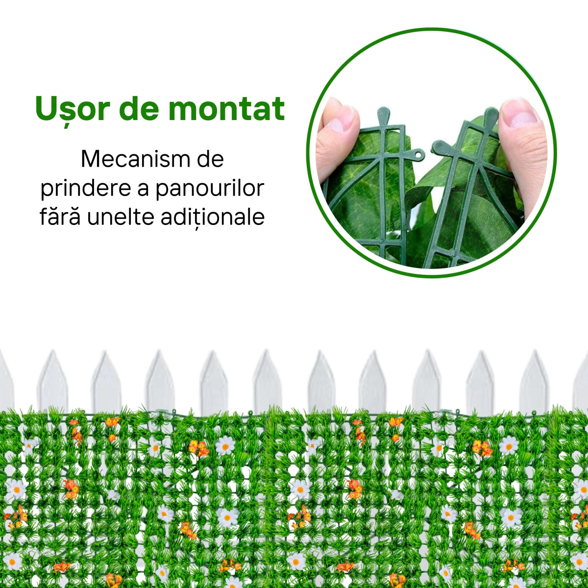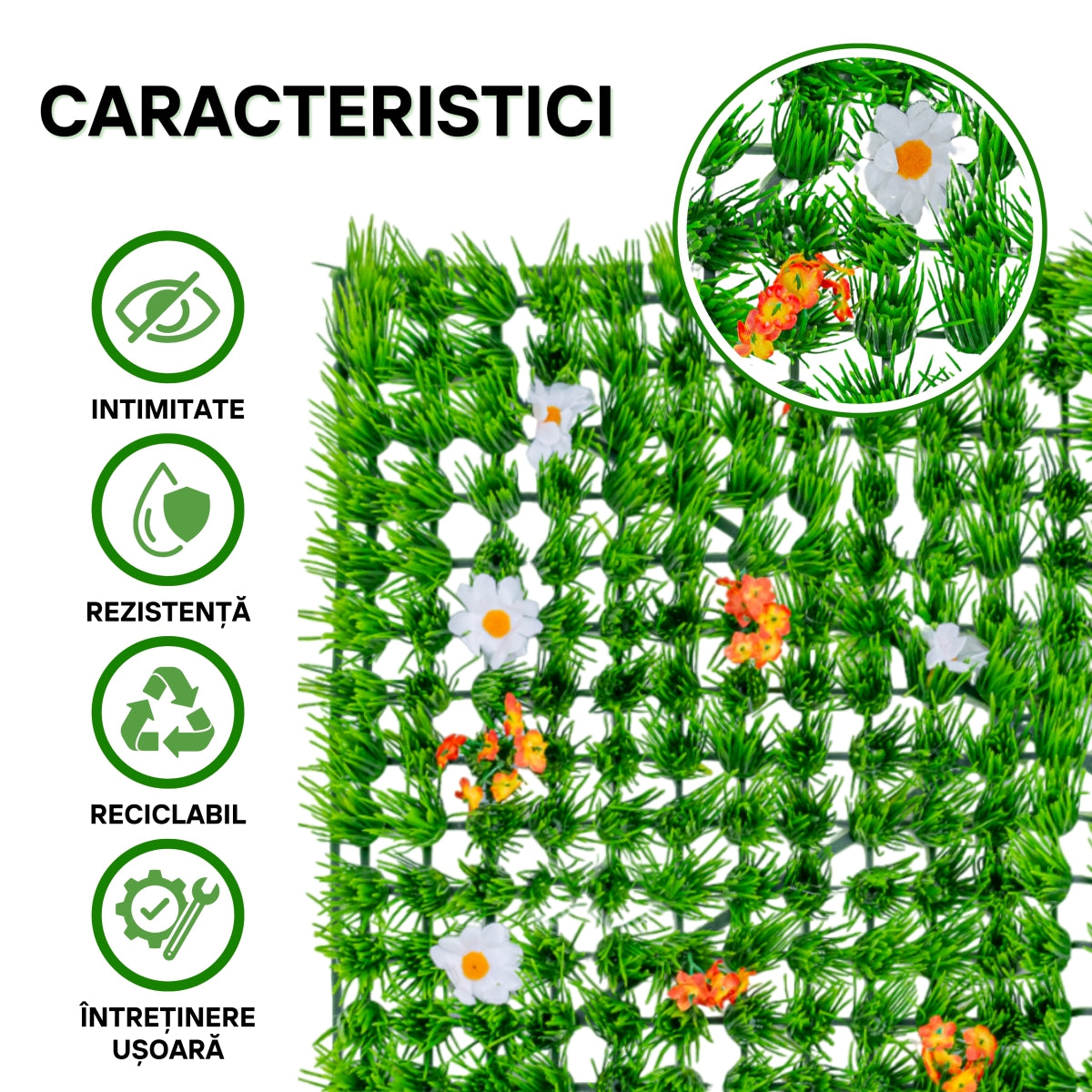 Panou din plante artificiale, cu iarba si flori, Naimeed D5894, Multicolor, 600x400mm