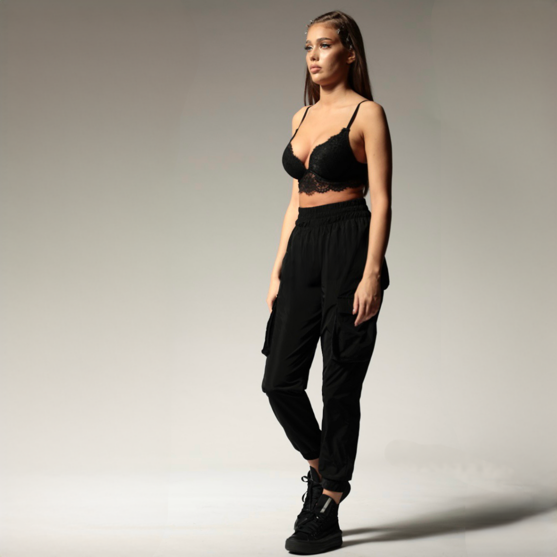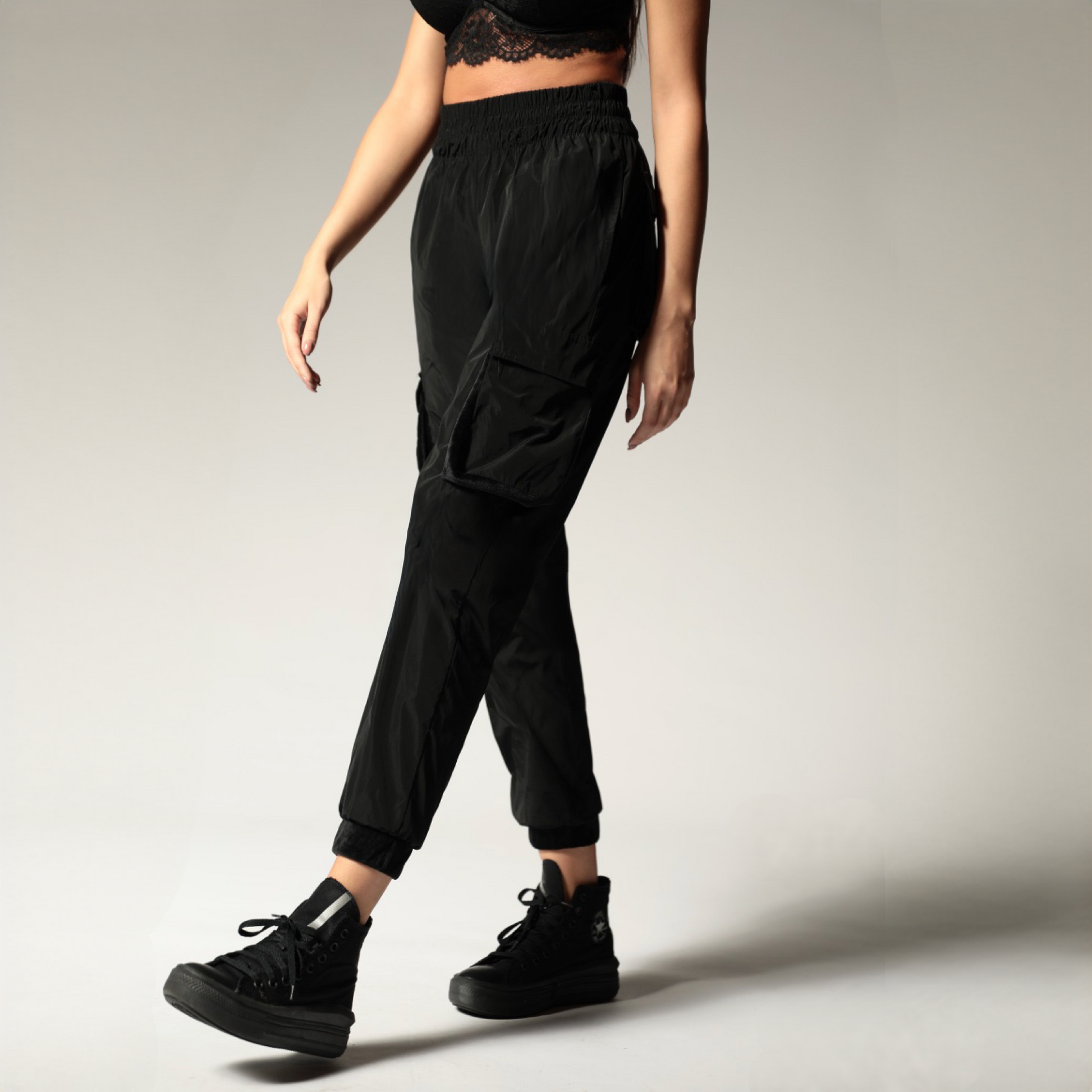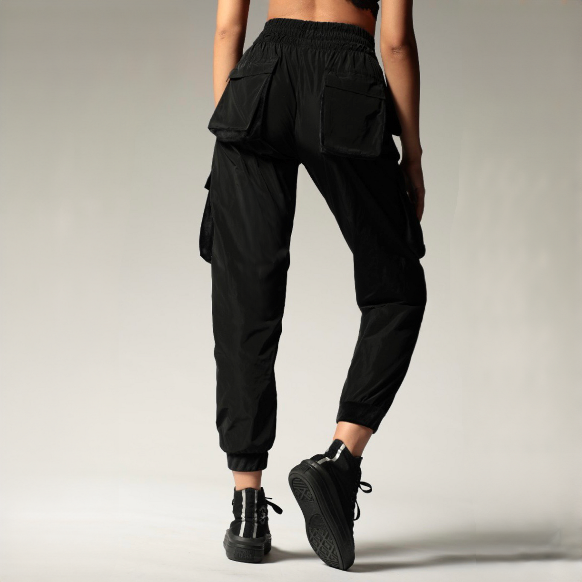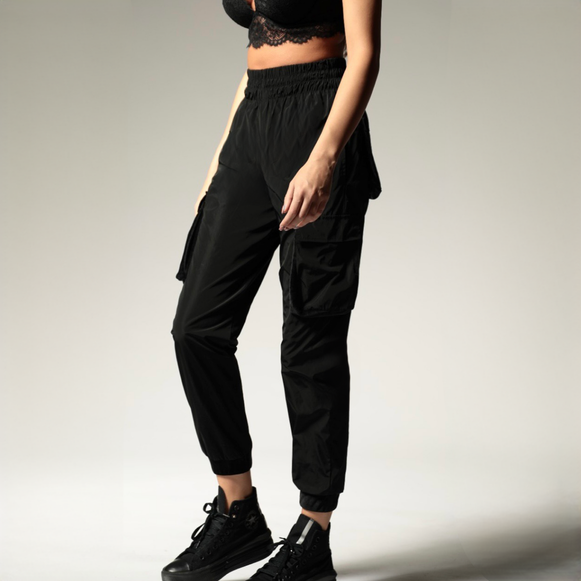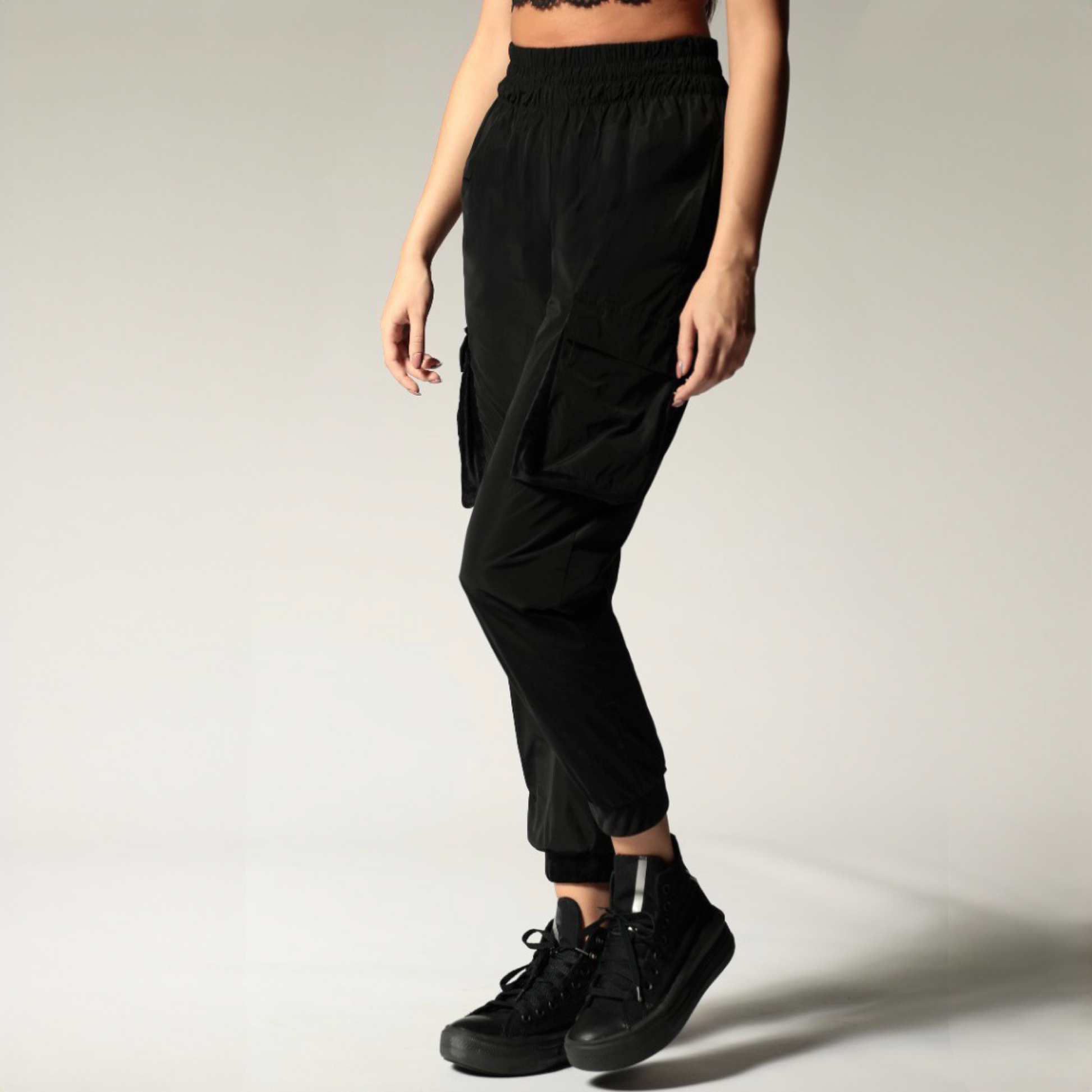Pantaloni Cargo cu talie inalta si buzunare 3D