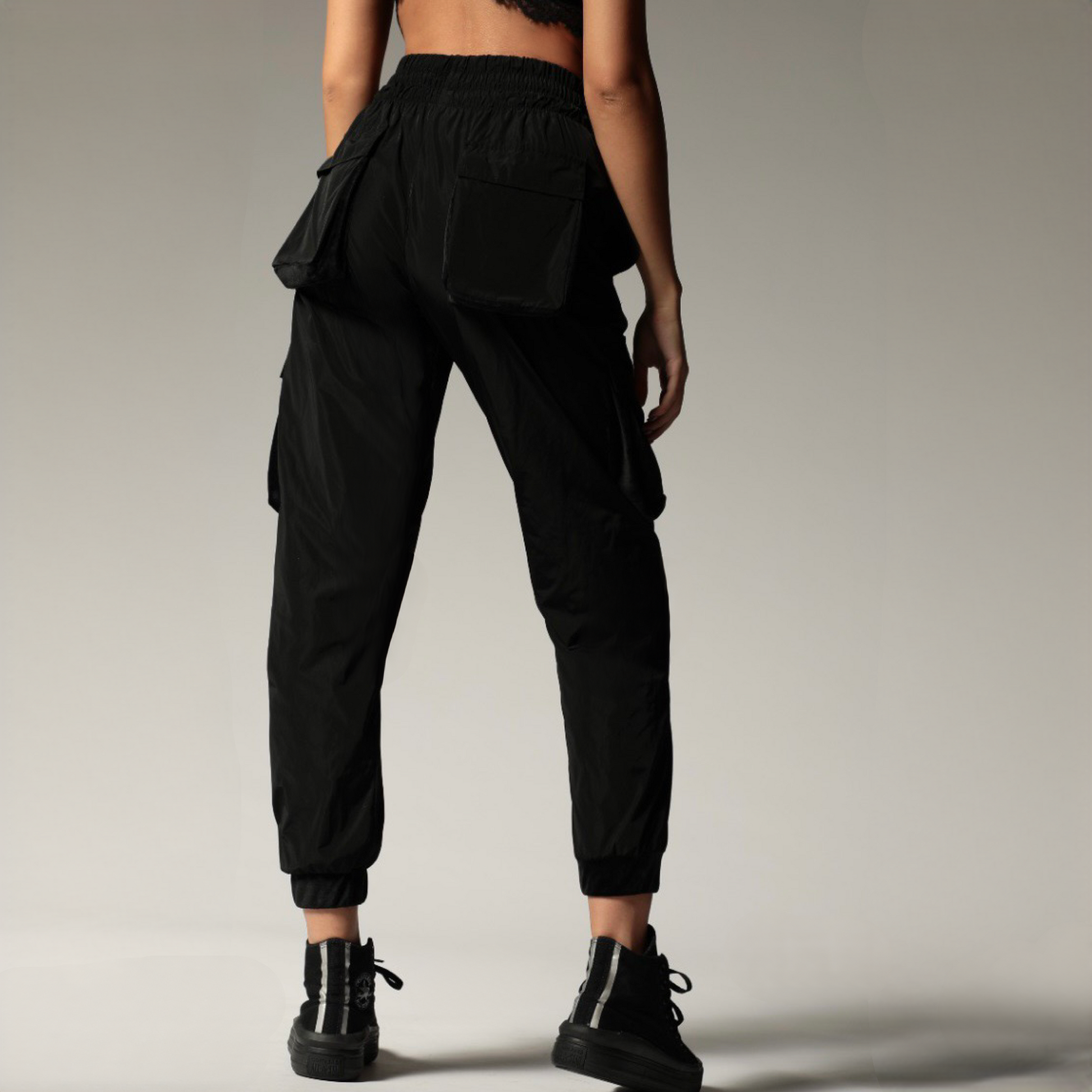 Pantaloni dama negri cu buzunare aplicate Cargo