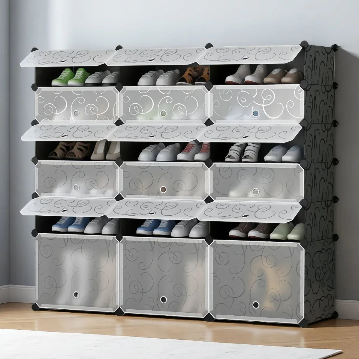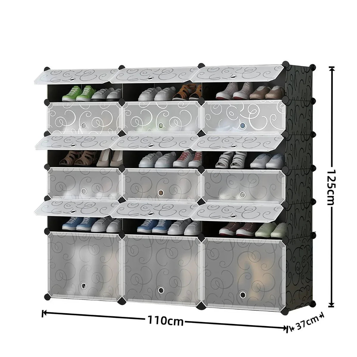 Pantofar Modular, 18 usi, Naimeed D7915, 37x110x125cm, Negru