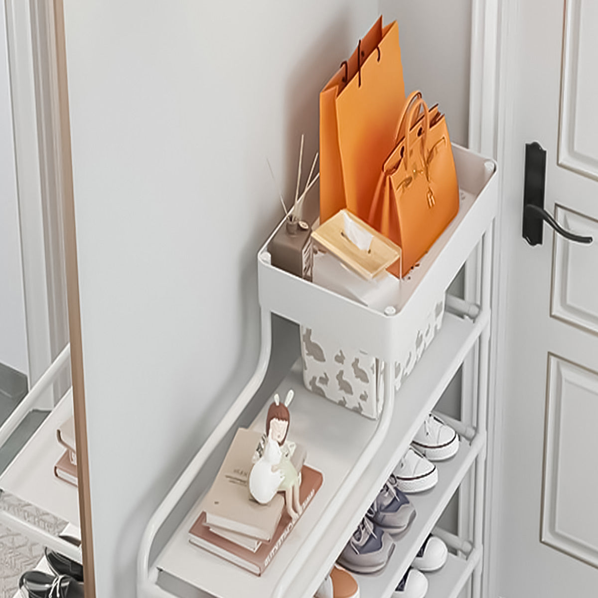 Cadru metalic tubular usor si totusi robust, ceea ce face raftul de incaltaminte durabil si usor de deplasat.