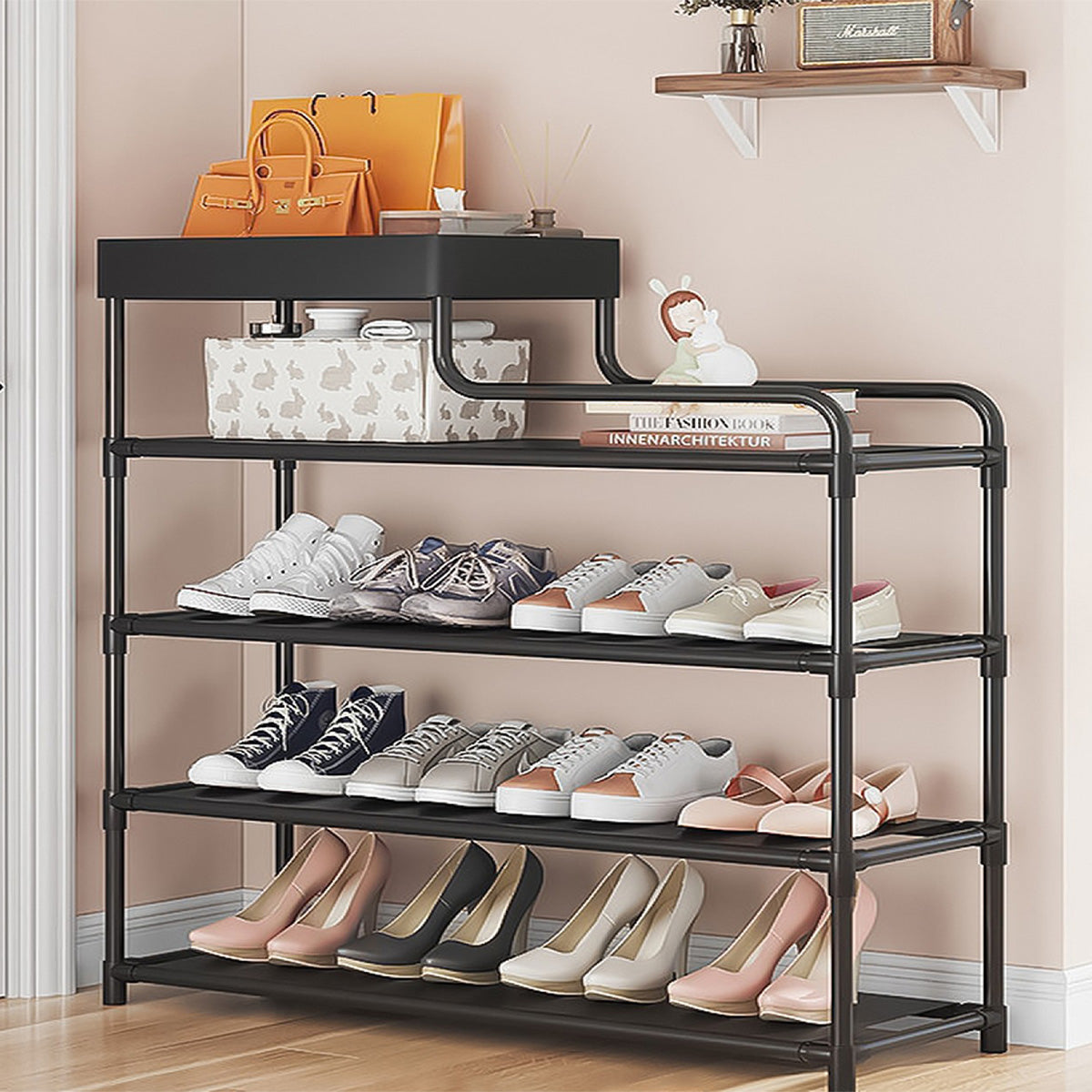 Pantofar, Naimeed D5549, raft incaltaminte, polita multifunctionala, 81 x 22 x 80 cm, negru