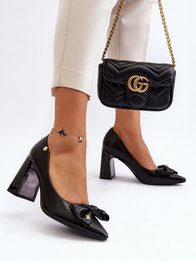 Pantofii eleganți pe un toc stiletto robust sunt alegerea perfectă pentru multe ocazii. Confecționați cu atenție la detalii, au o talpă moale și confortabilă din piele naturală, care va asigura confortul chiar și în timpul purtării îndelungate. Botul lor ascuțit adaugă stil, în timp ce emblema subtilă de pe părțile laterale ale feței adaugă o notă sofisticată. Partea din față este decorată cu o fundă. Acest model va completa perfect atât stilul de zi cu zi, cât și cel elegant!