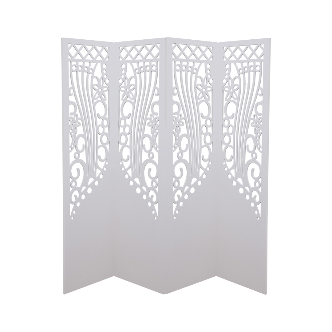 Paravan de camera cu 4 panouri, Naimeed D91 PVC, culoare alb, 180 x 156 cm