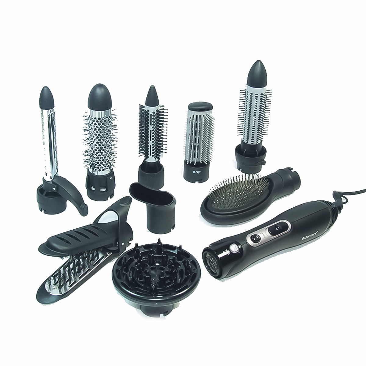 Perie cu aer cald 9 in 1 Sokany HB-825, 1000W, 2 temperaturi, 2 viteze, ionizare, Negru