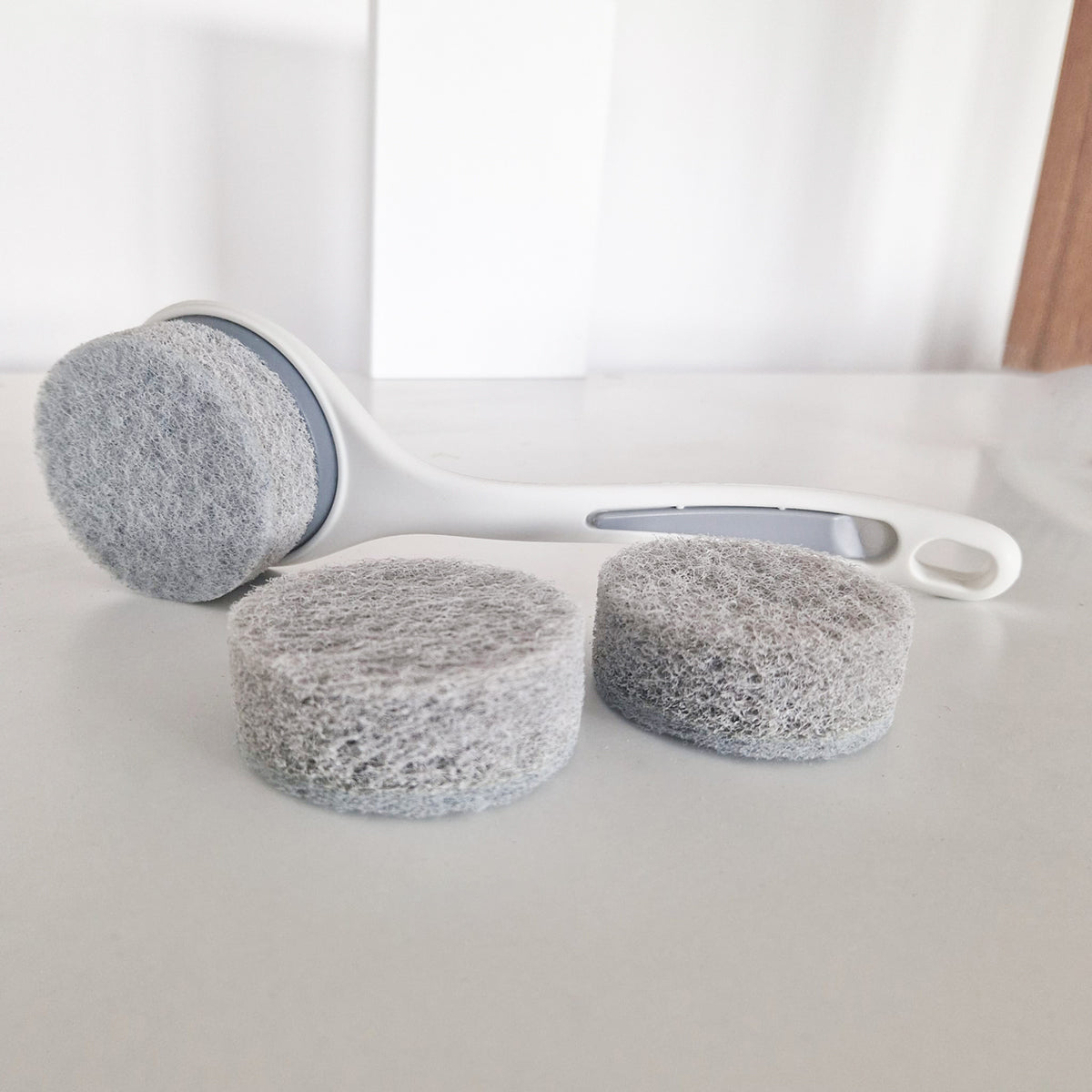Descopera peria de vase perfecta pentru bucataria ta, echipata cu doua capete de burete de rezerva si o racleta pentru curatare eficienta.