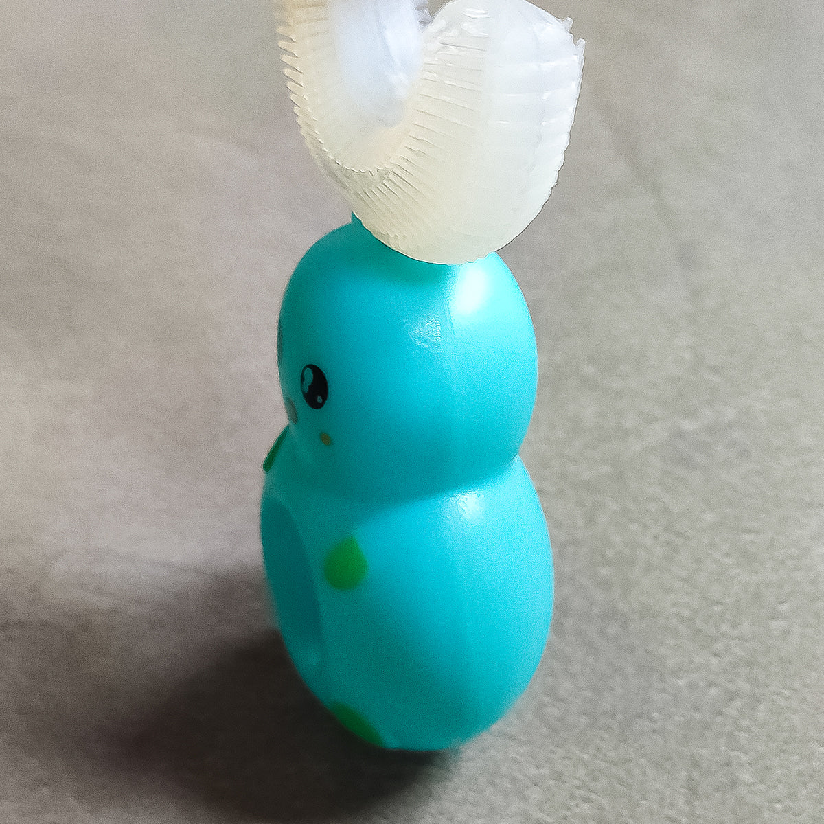Periuta U-Shape este blanda cu dintisorii copiilor si gingiile sensibile curatand partea de sus si de jos, fata si spate.