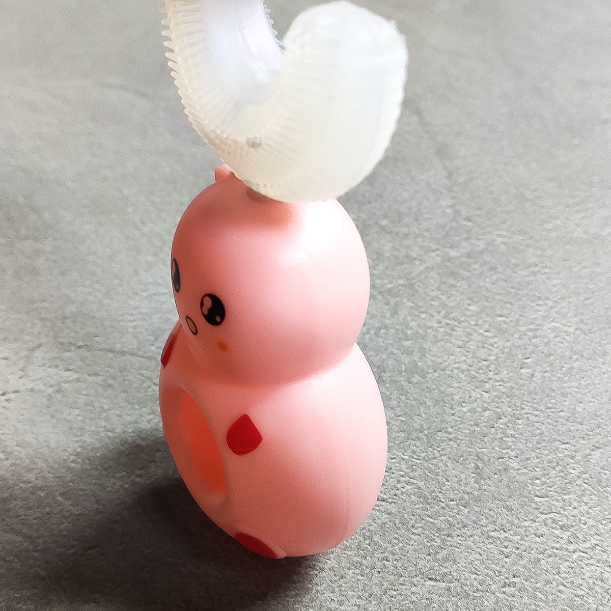 Periuta U-Shape este blanda cu dintisorii copiilor si gingiile sensibile curatand partea de sus si de jos, fata si spate.