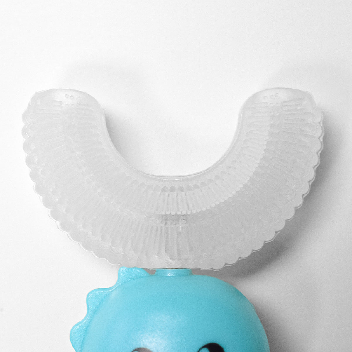Periuta U-Shape este blanda cu dintisorii copiilor si gingiile sensibile curatand partea de sus si de jos, fata si spate.
