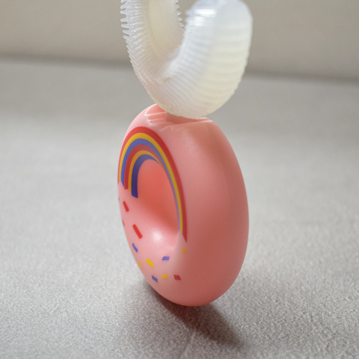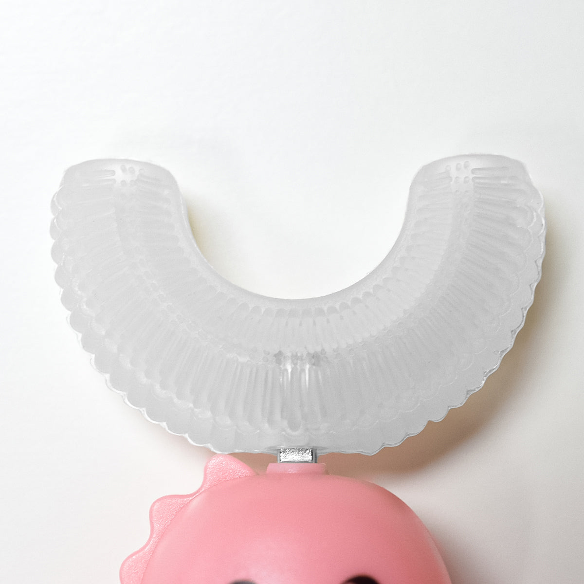 Periuta U-Shape este blanda cu dintisorii copiilor si gingiile sensibile curatand partea de sus si de jos, fata si spate.