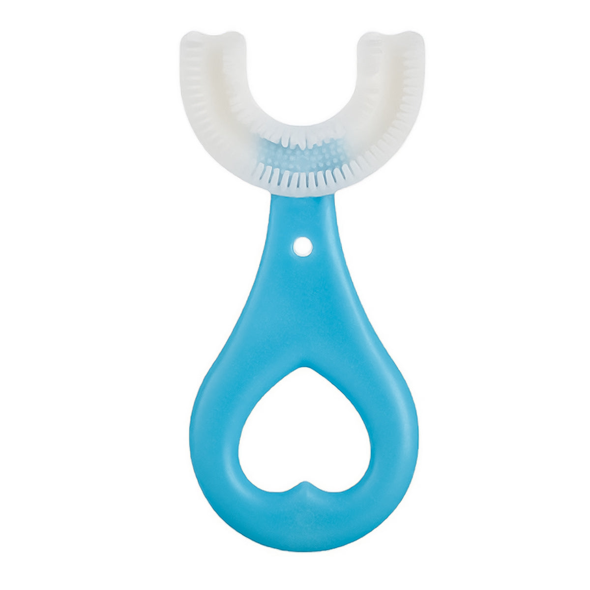 Periuta U-Shape este blanda cu dintisorii copiilor si gingiile sensibilecuratand partea de sus si de jos, fata si spate.