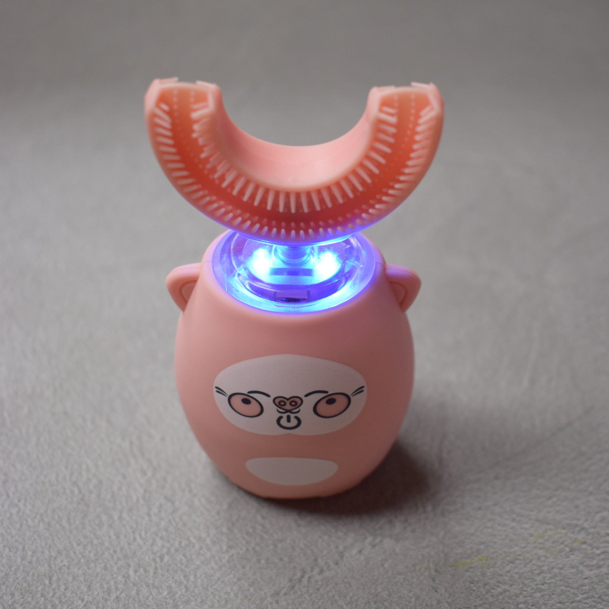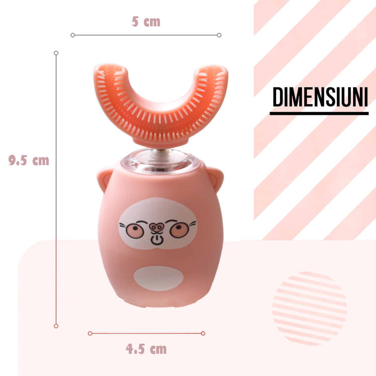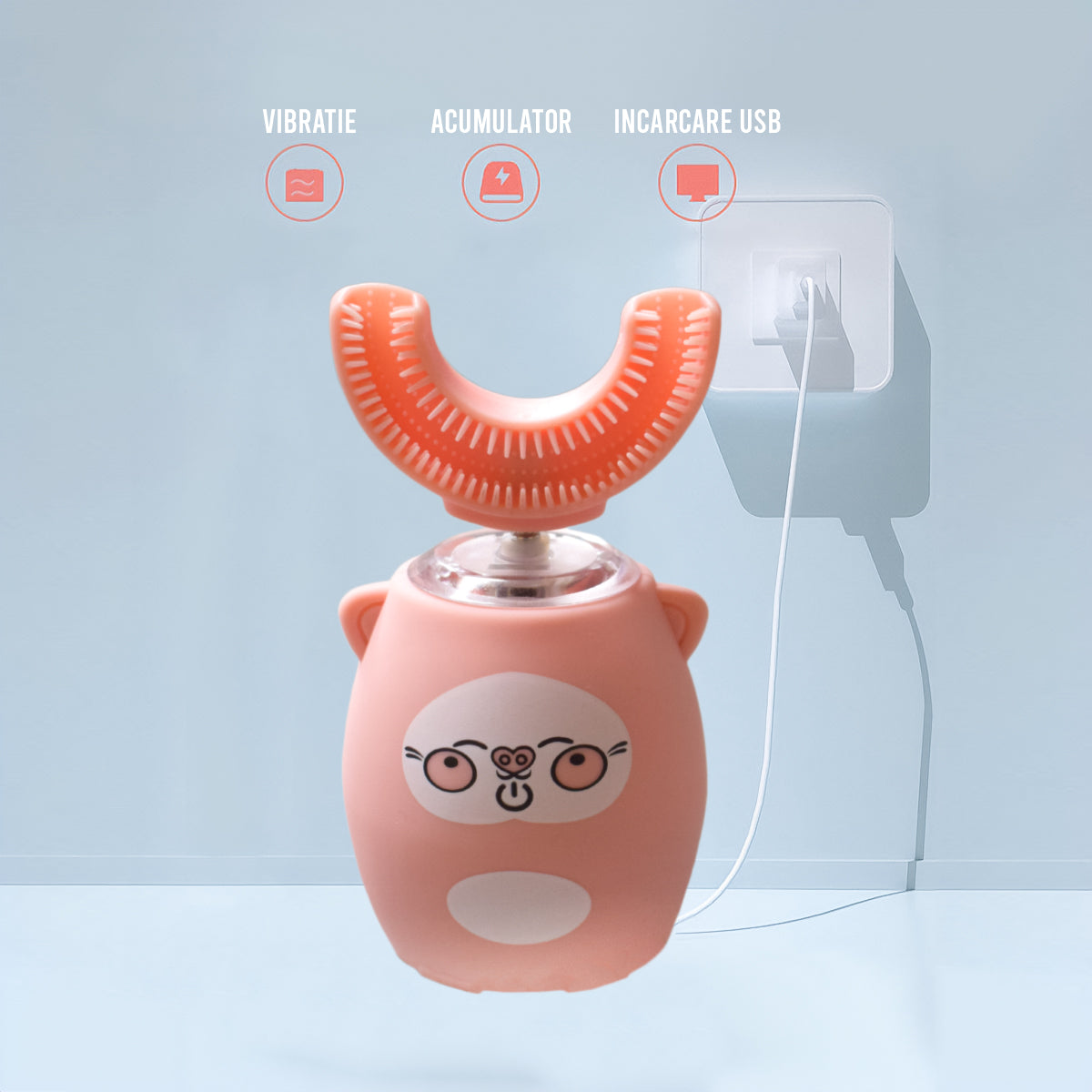 Periuta de dinti electrica U-shape, 3 programe, pentru Copii 2-7 ani, Naimeed D4369, acumulator, incarcare USB, Roz