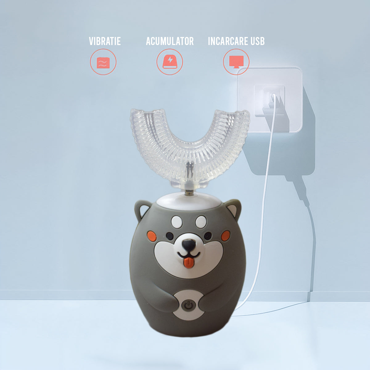 Periuta de dinti electrica U-shape, 5 programe, pentru Copii 3-12 ani, Naimeed D4370, acumulator, incarcare USB, Gri