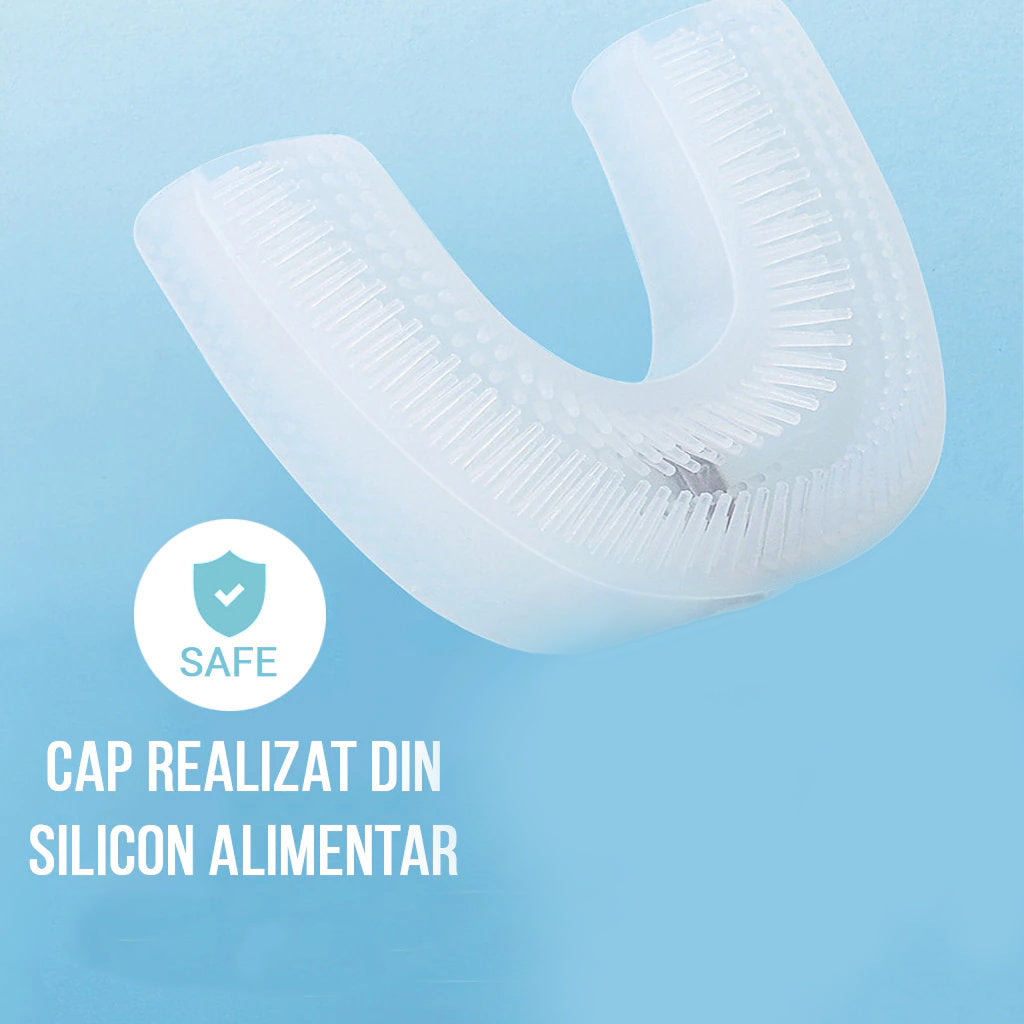 Periuta U-Shape este blanda cu dintisorii copiilor si gingiile sensibile curatand partea de sus si de jos, fata si spate.