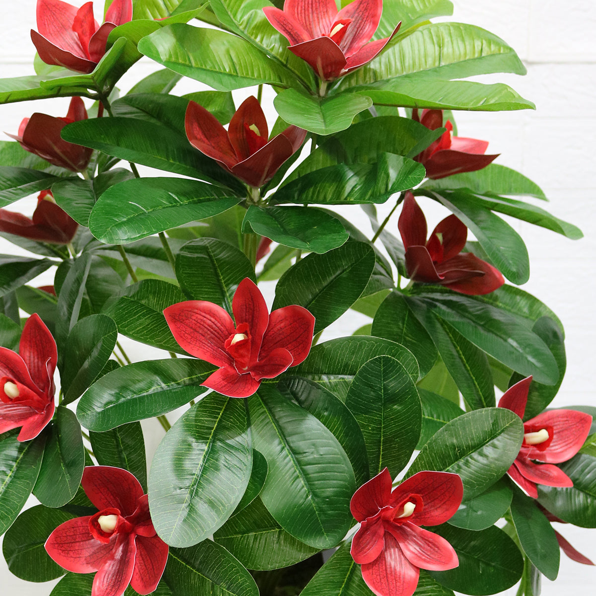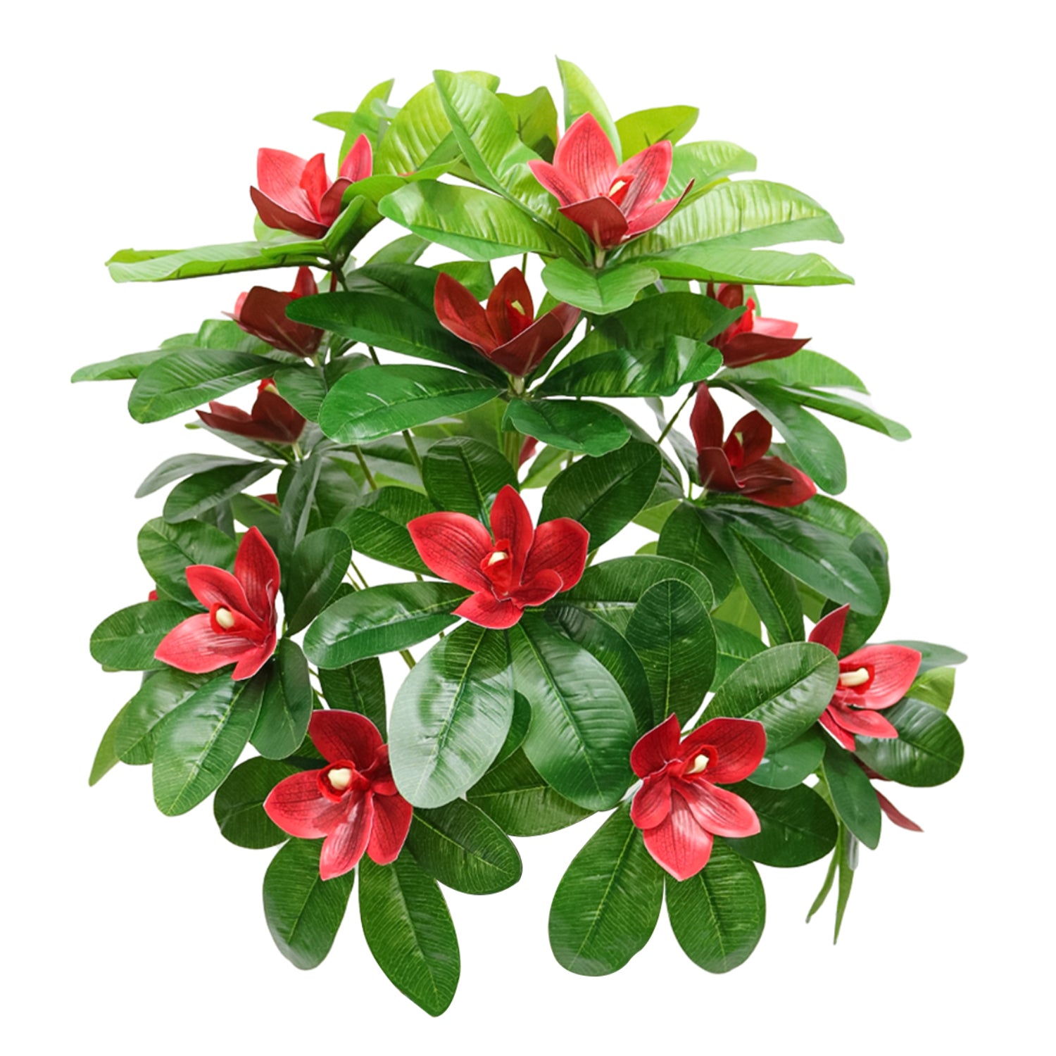 Planta artificiala, Cymbidium fara ghiveci, D4259, 60cm, verde/rosu