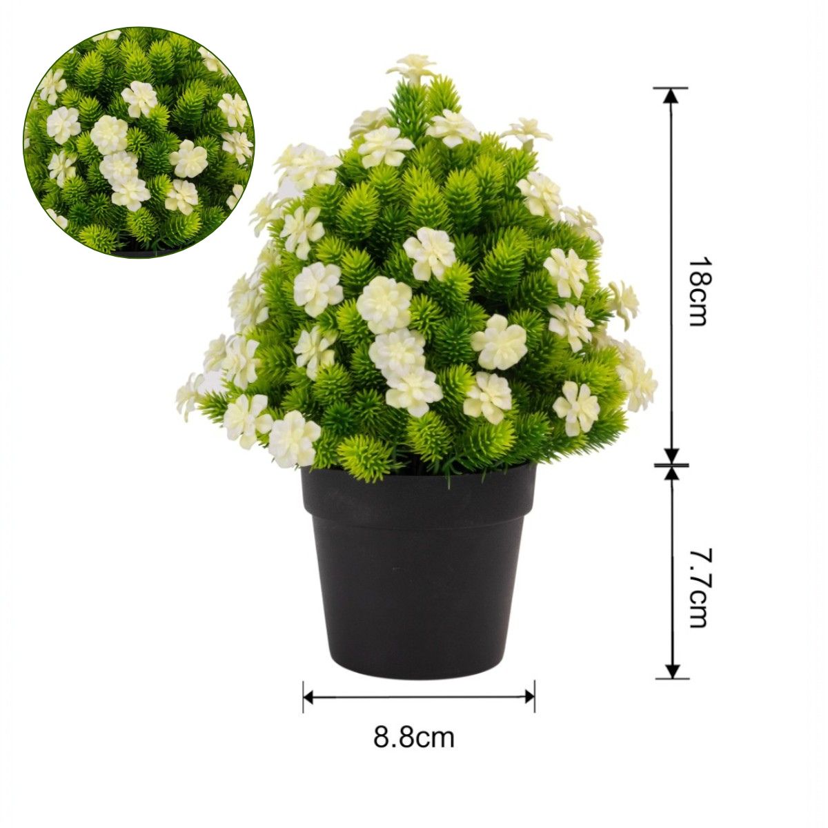 Planta artificiala, tip Cryptomeria, cu ghiveci, Naimeed D6920, 24x8.8 cm, Alb/Verde