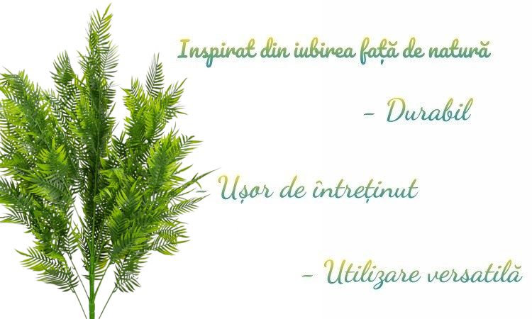 Aceasta planta decorativa artificiala este inspirata de frunzele elegante ale Areca Palm, fiind o alegere excelenta pentru