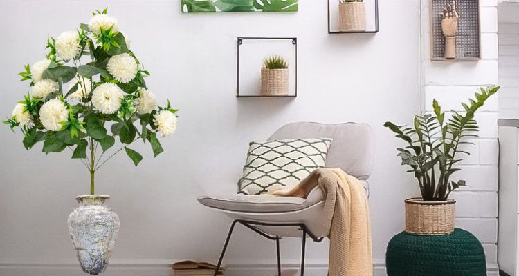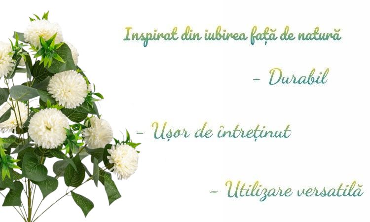 Aceste plante decorative artificiale, inspirate de crizanteme, sunt disponibile in alb, roz si rosu, cu flori bogate si frunze realiste.