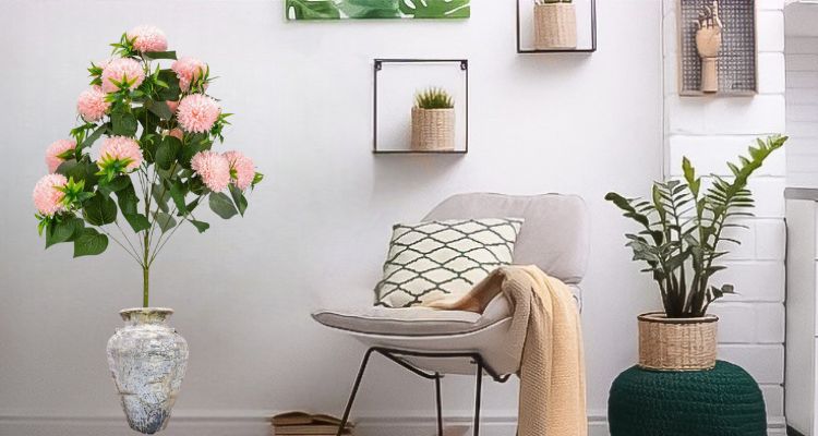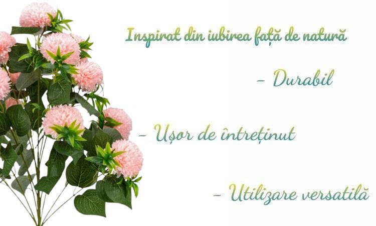 Aceste plante decorative artificiale, inspirate de crizanteme, sunt disponibile in alb, roz si rosu, cu flori bogate si frunze realiste.