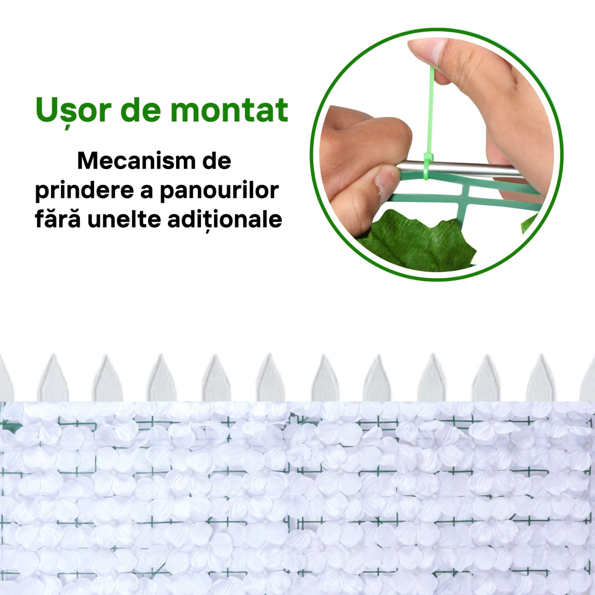 Gard cu flori artificiale pe suport din plastic este o solutie