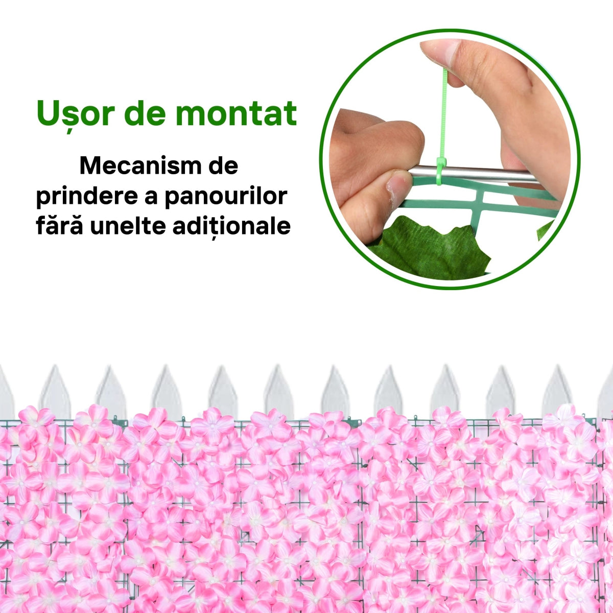Gard cu flori artificiale pe suport din plastic este o solutie