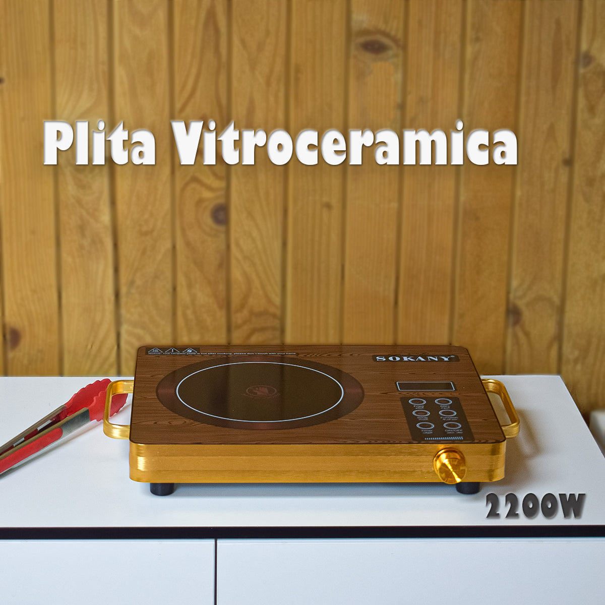 Plita electrica vitroceramica, Sokany SK-3569, 2200w, control al temperaturii, timer, afisaj digital