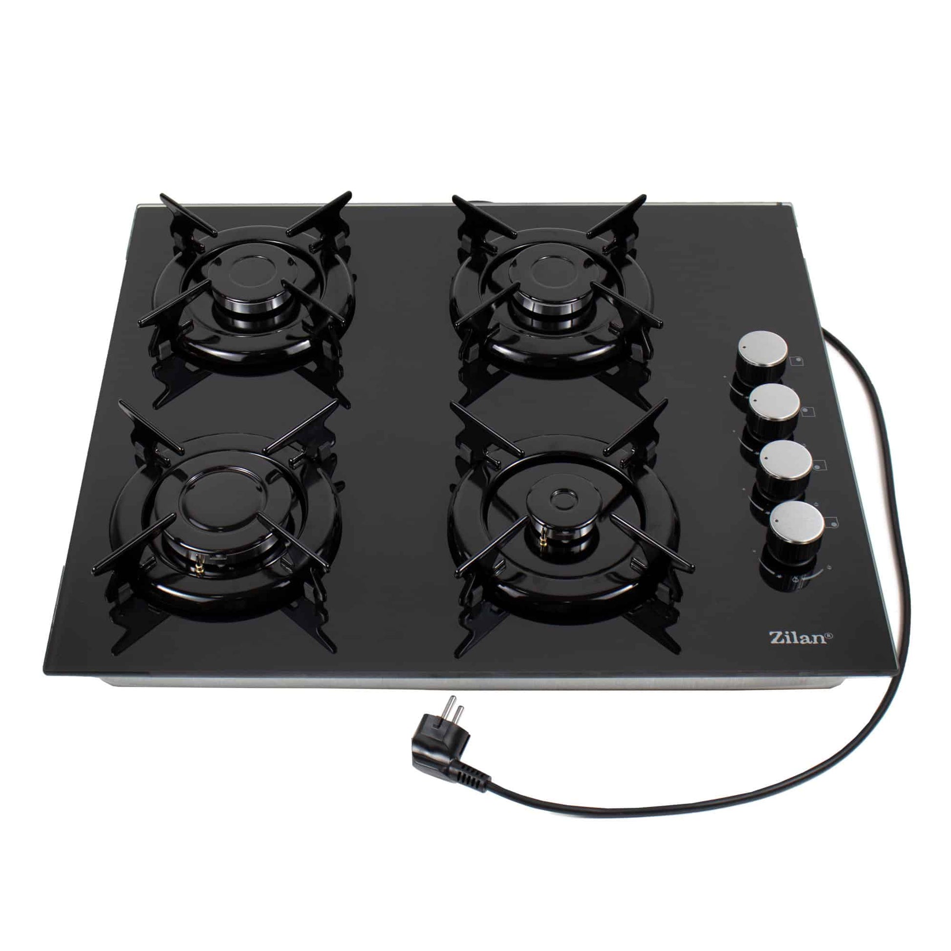 Plita incorporabila, gaz GPL sau natural cu 4 ochiuri, aprindere electrica, sticla, negru / ZLN 0058