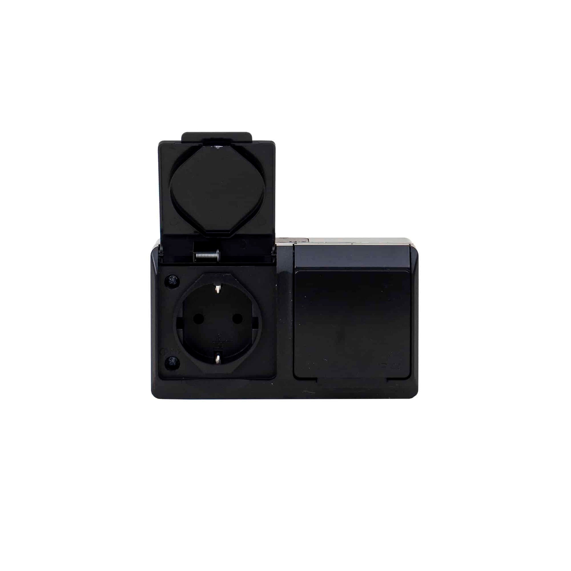 Priza dubla neagra cu capac HERMES, 16A/250, IP44 / ELPL-0325-09