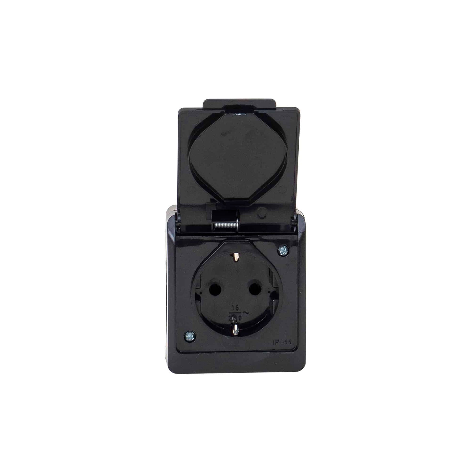 Priza simpla neagra cu capac HERMES, 16A/250, IP44 / ELPL-0324-09