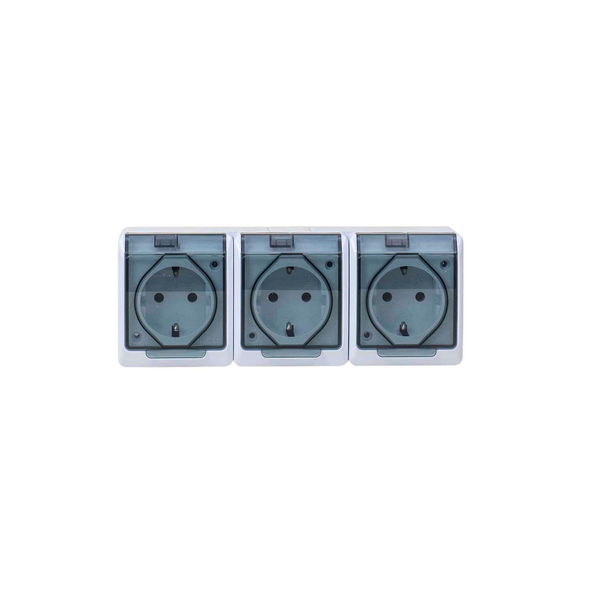 Priza tripla cu capac transparent HERMES, 16A/250, IP44.