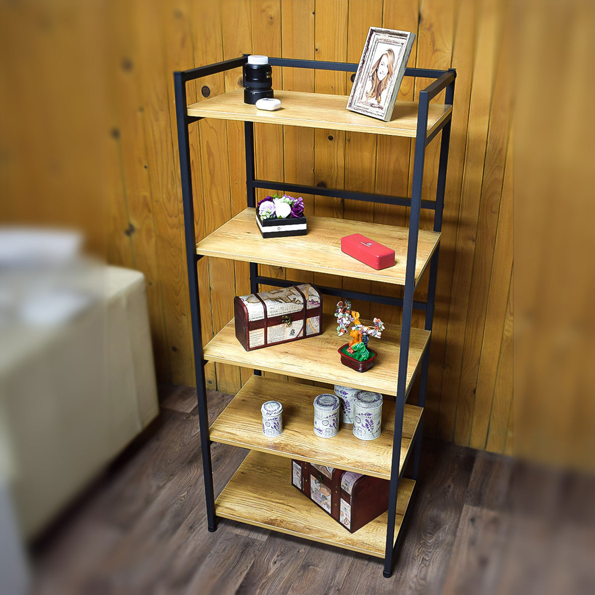 Raft cu 5 polite, Naimeed V5, Negru/Artar Japonez
