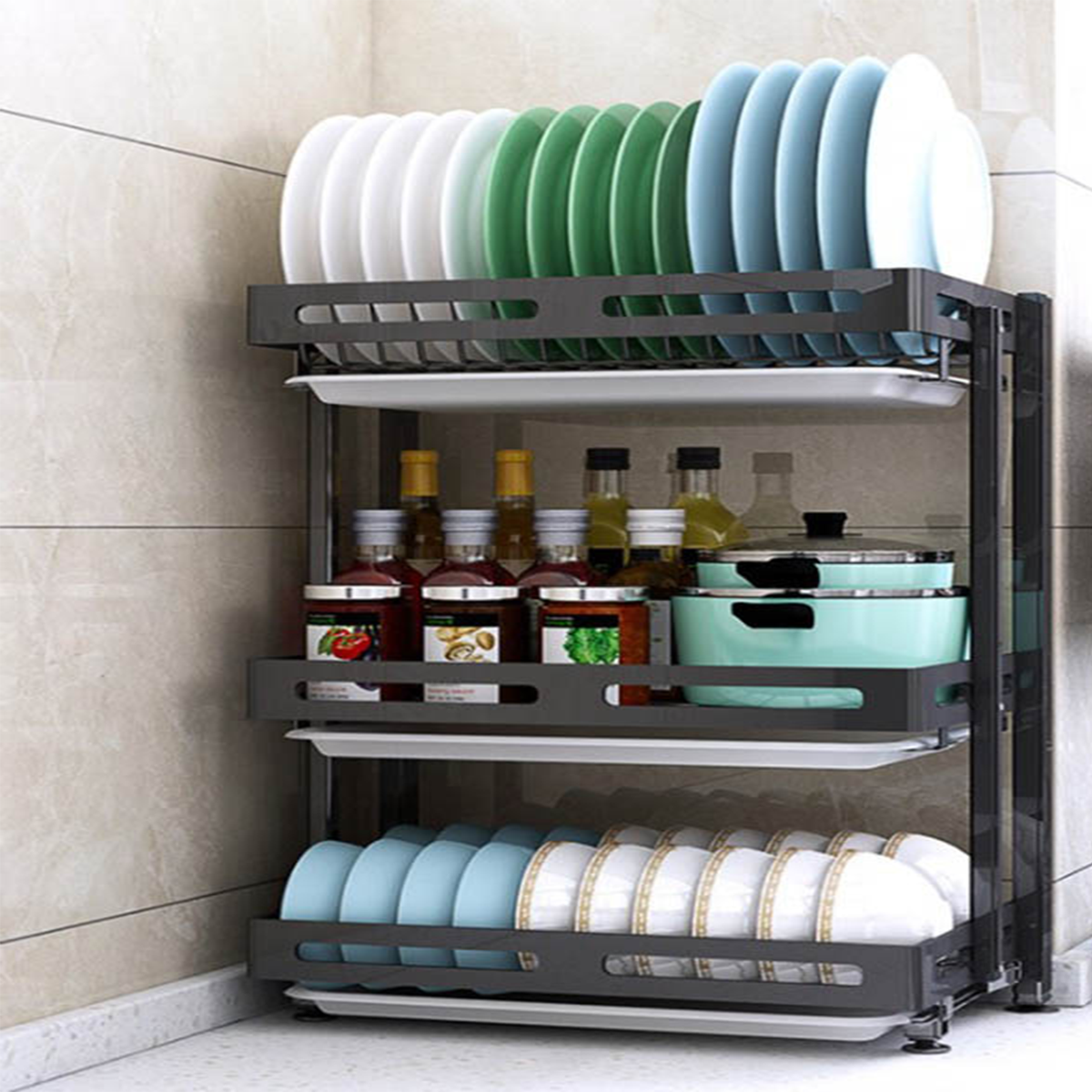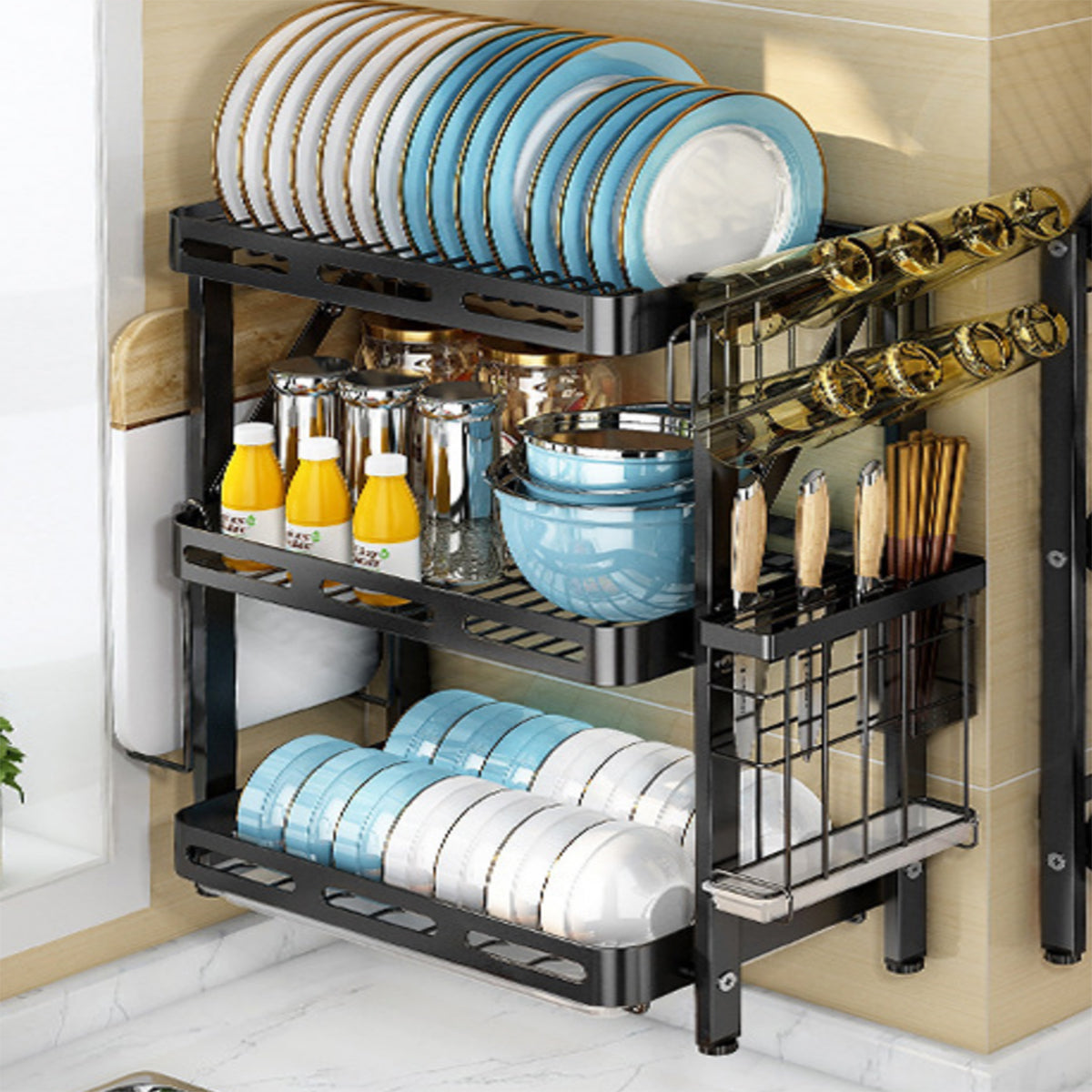 Raft metalic pentru vase, 3 polite, Naimeed D4463, Negru