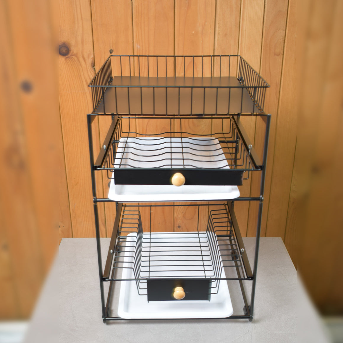 Raft metalic pentru vase si tacamuri, 3 polite, Naimeed D4497, Negru