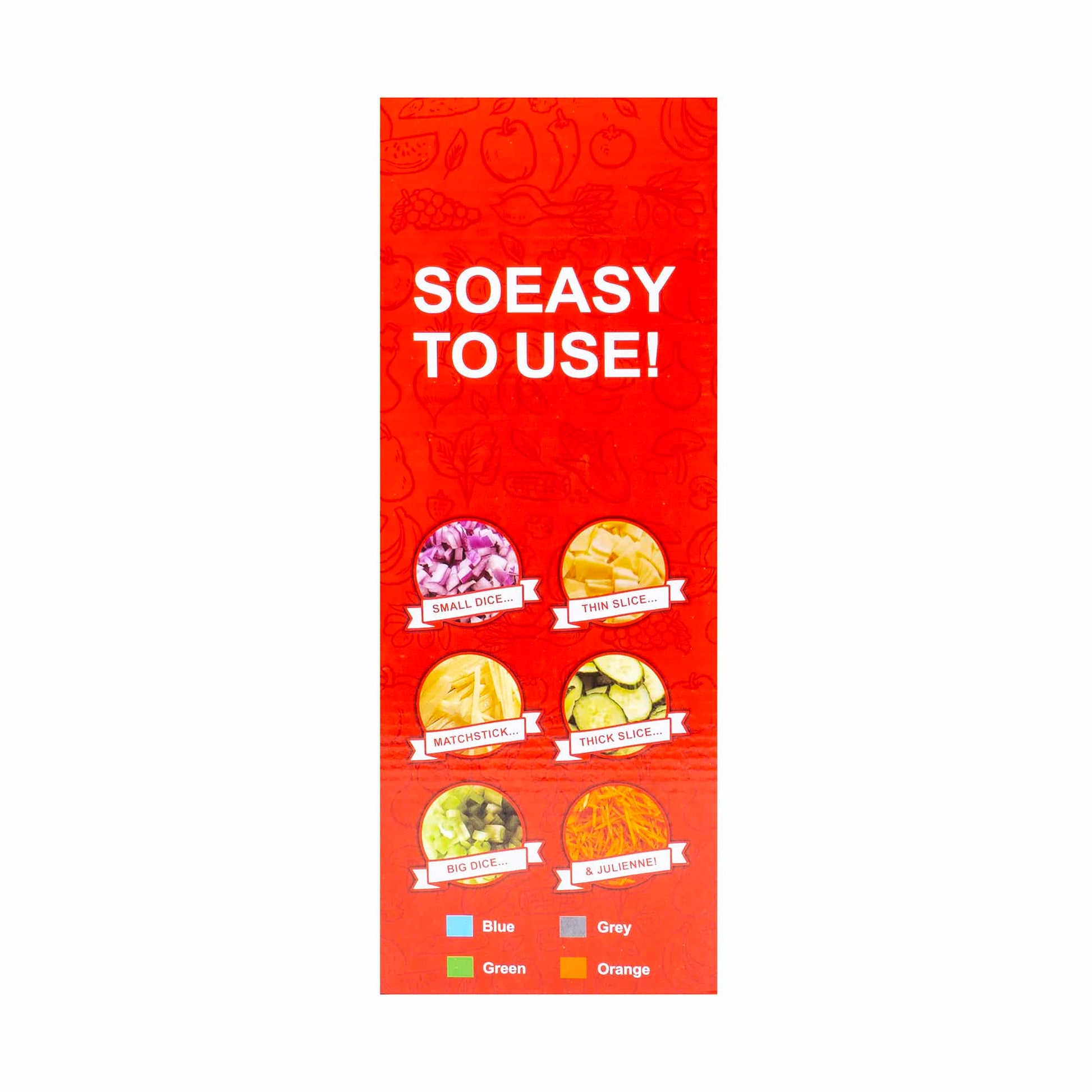 Acest feliator este reglabil vertical, versatil, cu care puteti taia o varietate de legume si fructe la forma si grosimea de 0.5mm pana la 0.8mm, sub dierite forme cum ar fi: cuburi, felii, julien, etc. Lama este fabricat din otel inoxidabil 420, ascutita si durabila. Manerul si taietorul sunt retractabile pentru a ocupa cat mai putin spatiu in bucataria ta.
