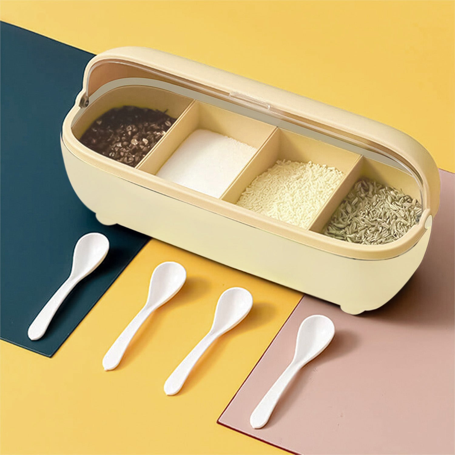 Echipata cu 4 compartimente, in care poti sa depozitezi cu usurinta toate condimentele.