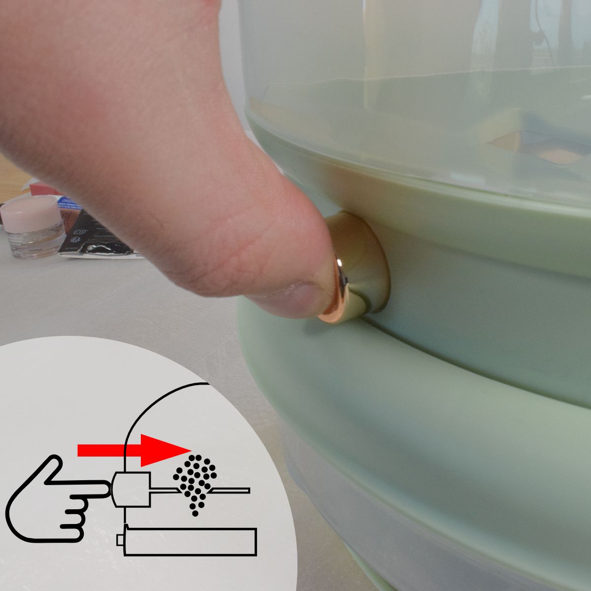 Accesul la boabe se realizeaza prin simpla apasare a butonului fixat sub compartimentul dorit.