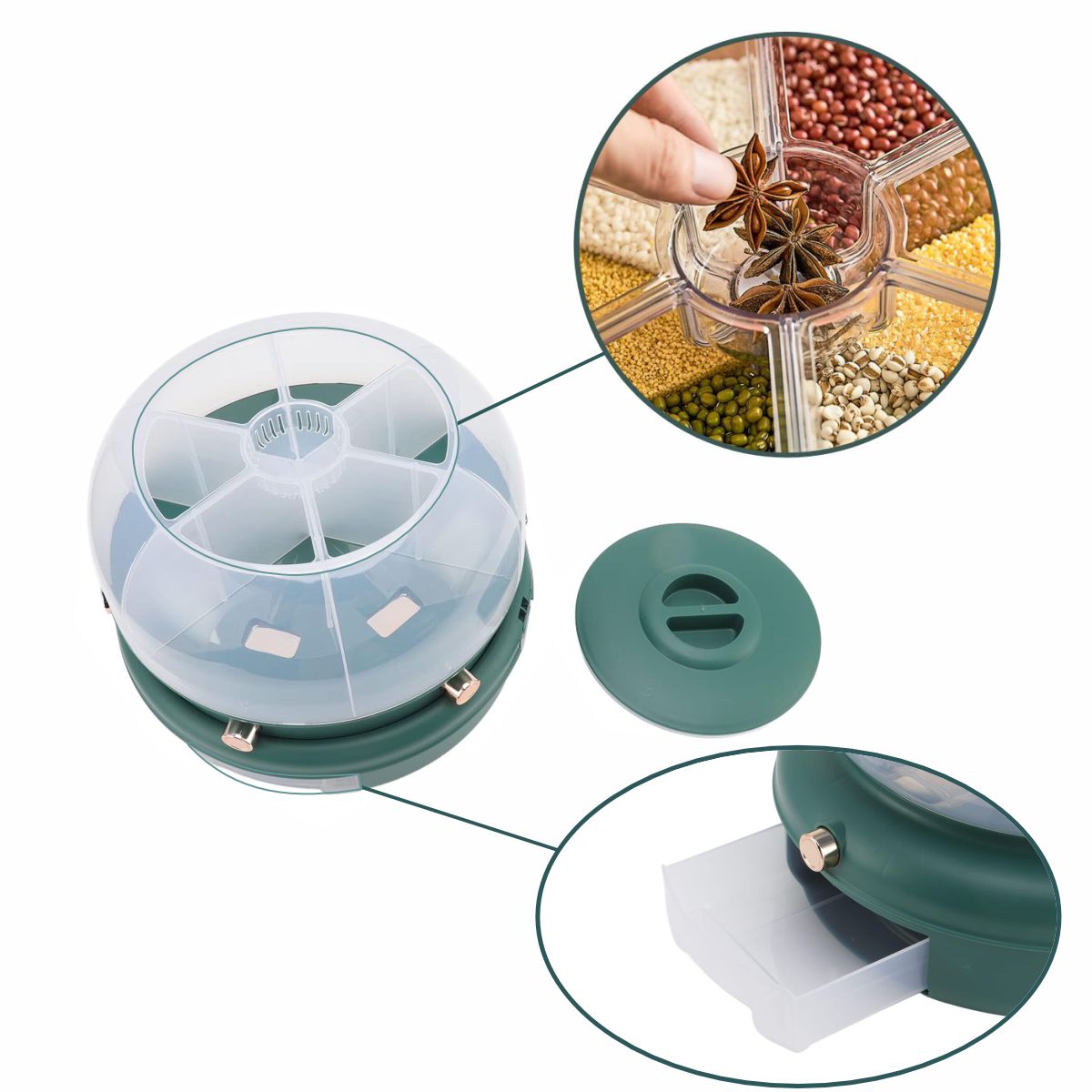 Echipata cu 6 compartimente, in care poti sa depozitezi cu usurinta orez sau altele.